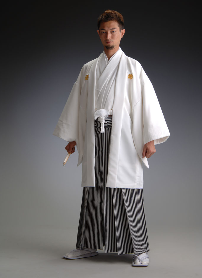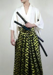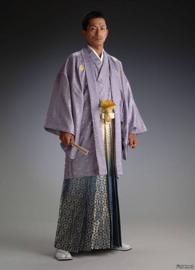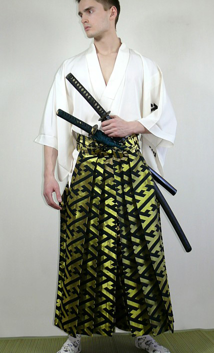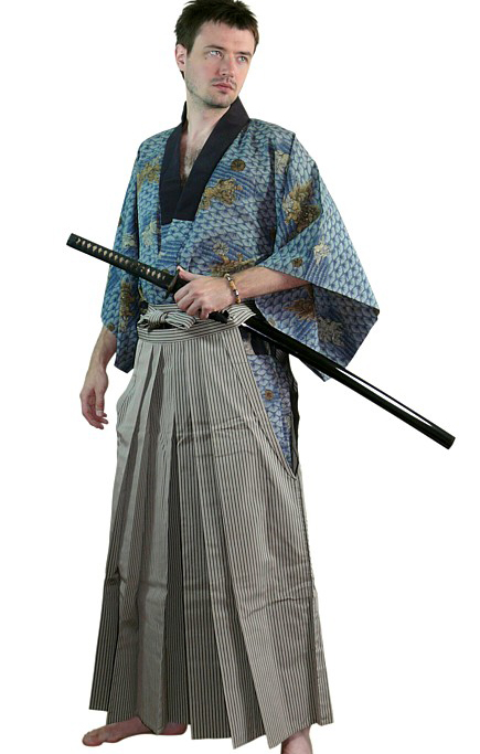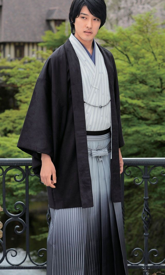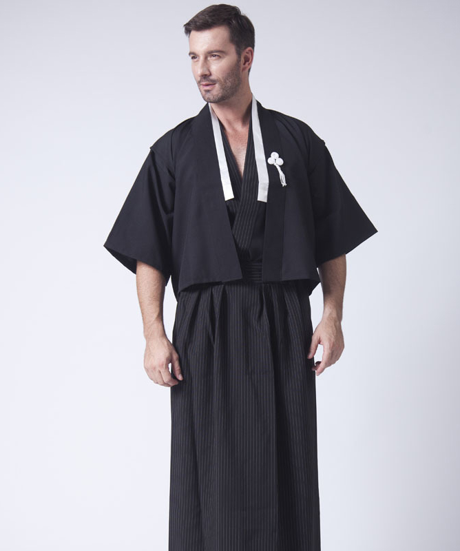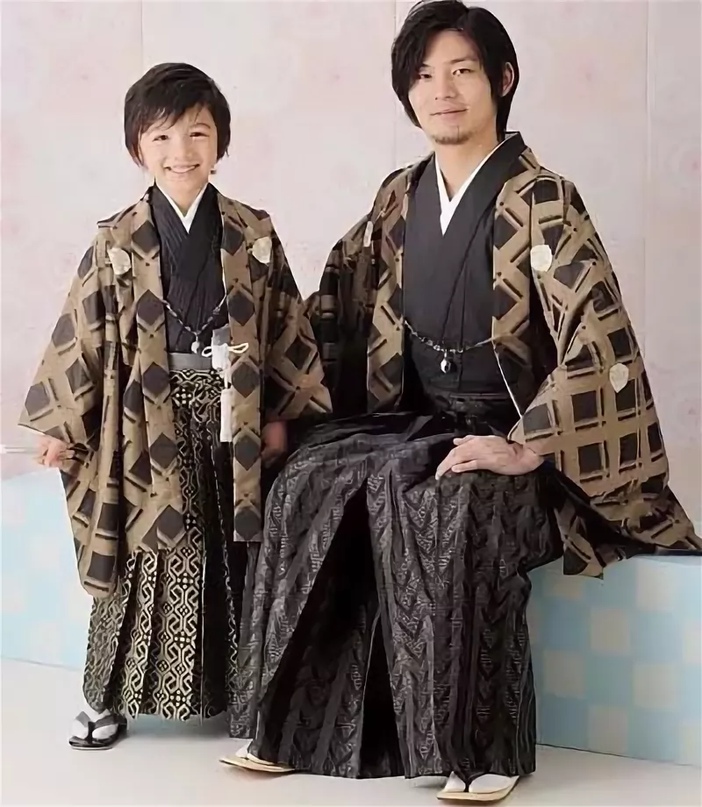 Erkekler hakama ile kombine edilmiş kimono giyerler. - Kıvrımlı ve etek görünümünde geniş pantolonlardır. Bugün esas olarak daha önce samuraylar tarafından giyilen dövüş sanatlarında kullanılıyorlar. Hakama'nın uzunluğu belden ayak bileklerine kadar uzanır ve kısaltılmış versiyonları da vardır. Eski zamanlarda sadece saray mensupları, askerler ve din adamları bu giysiyi giyme hakkına sahipti. Hakama bir kimono üzerine giyilir ve geleneksel kıyafet, duruşu iyileştirmek için bir bel yastığı ile tamamlanır.