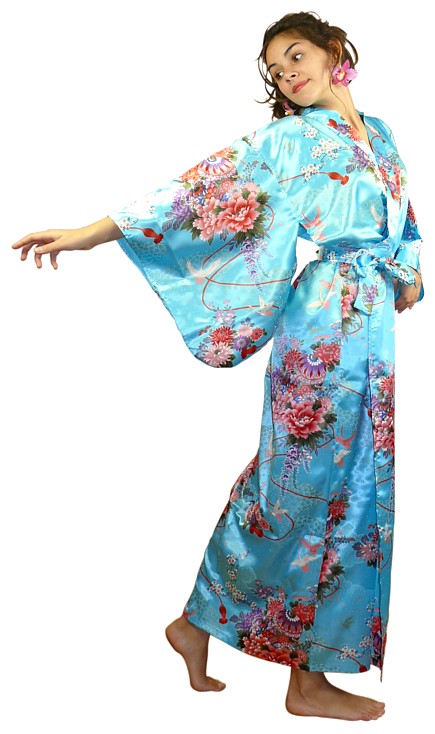 Ev yapımı kimono - yukata, Japonya'da geleneksel bir giyim türü... Donuk renklerde farklılık gösterir, her gün kabul edilir.Japon geleneğinde turistler de bir yukata kimono giymeye teşvik edilir. Sabahlık yerine otellerde bulunabilen kişidir, bu durumda kıyafetler otelin kurumsal logosu ile süslenecektir. Sokak yukataları yaz olarak kabul edilir, daha yoğun, daha parlak, güzel kemerlerle tamamlanır.