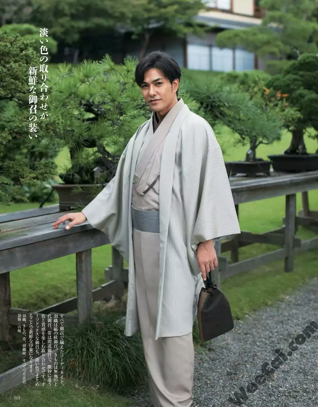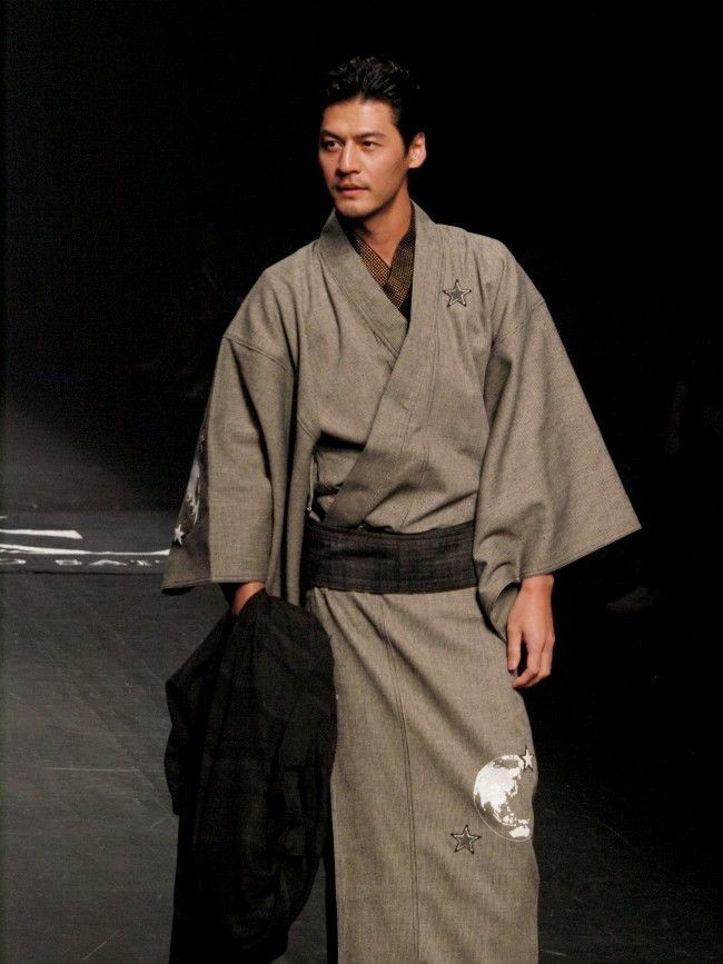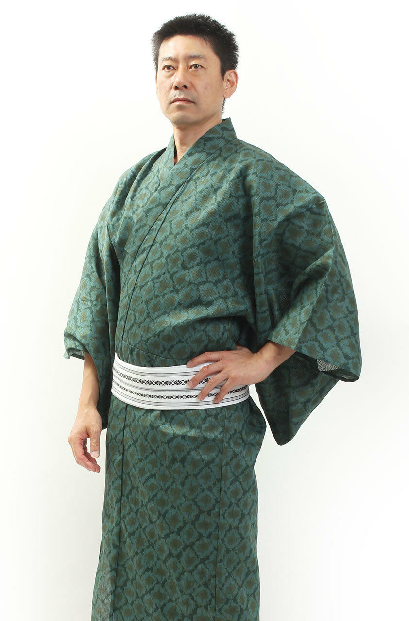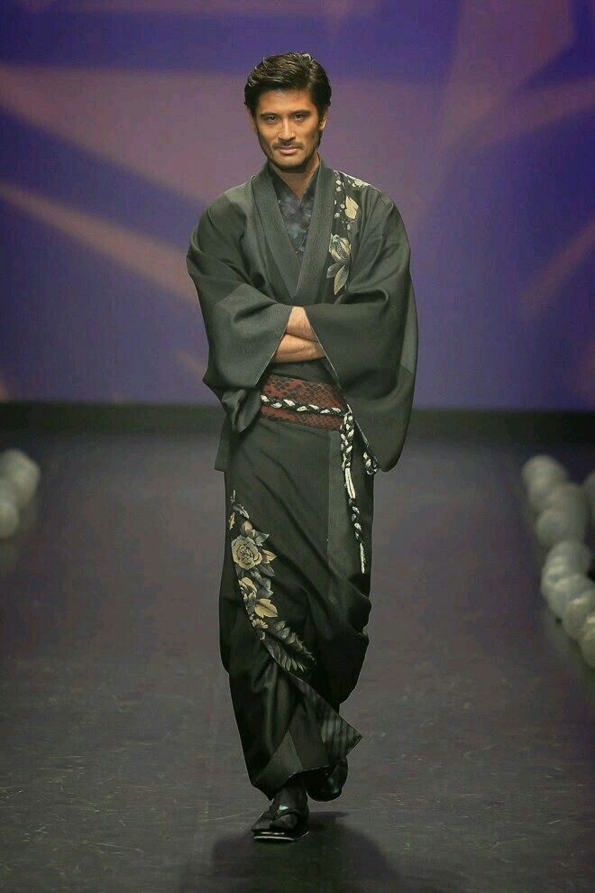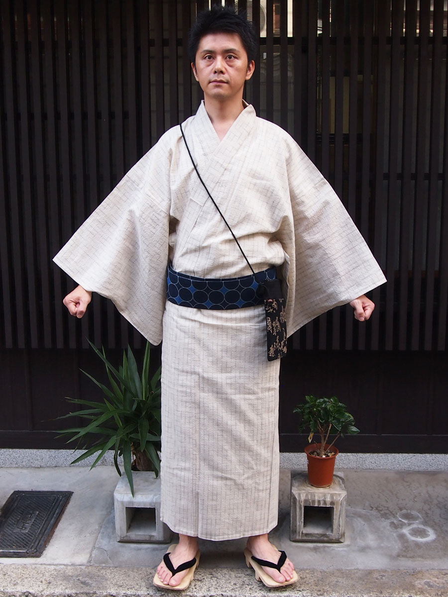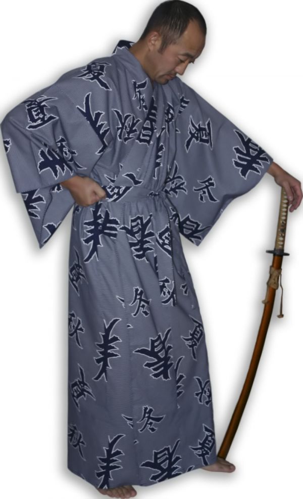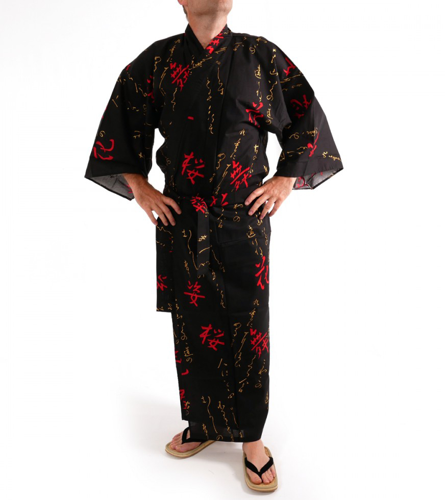 Bir erkek kimonosu, belirli gereksinimlere ve geleneklere tam olarak uymalıdır. Mutlaka 1 kesim kumaştan oluşturulmuş T şeklinde bir siluete sahiptir. Toka yoktur, bunların yerine kıyafetlerin zemininin sürülmesi ve obi kemeri ile bağlanması kullanılmaktadır. Bir erkek gardırobunda oldukça dardır, sadece omuz çizgisi ve bel vurgulanır, fiziğin diğer tüm özellikleri gizli kalır. Kollar bol, kol çevresinde çok sıkı değil.