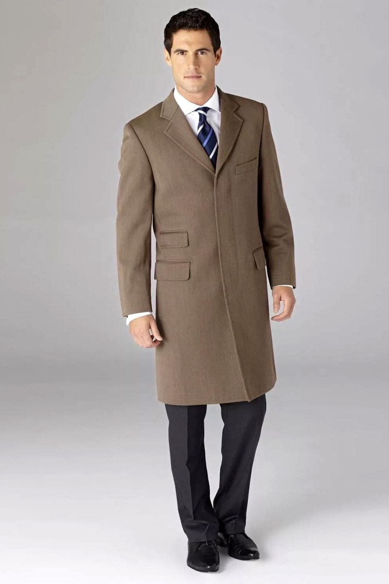 - Gizli kesim. Bu model Chesterfield'a çok benzer, ancak daha az katı bir versiyondur. Tek göğüslü, dizlere kadar iniyor. Manşetleri var, arkada bir yuva var ve önde birkaç cep var. Ceketin iç kısmında da büyük bir cep var. Covercoat, ince ve uzun boylu erkekler için mükemmel bir seçimdir.
