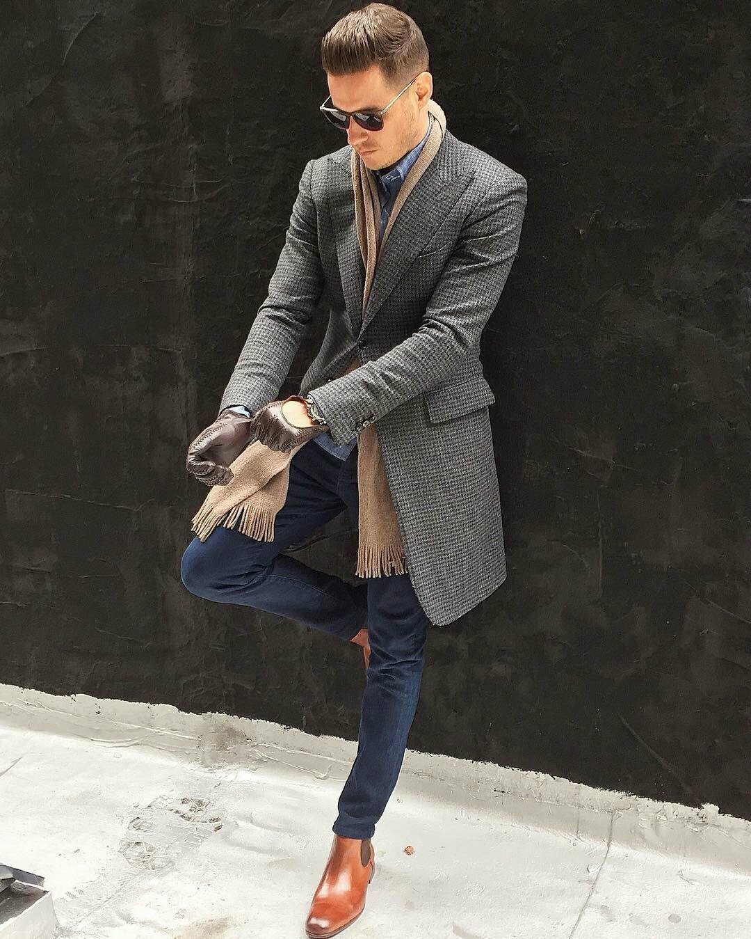 - Chesterfield. Bu, iki yüzyıldır popüler olan klasik, çok şık bir ceket. Tek göğüslü, beli dikişsiz, kısa klapalı, manşetsiz. Tarzın bir özelliği, ceketlere dikilenlere benzer dikilmiş düz ceplerdir. Dikdörtgen vücut tipine sahip geniş omuzlu ve ince erkekler için uygundur. Katı, ofis seçeneği.