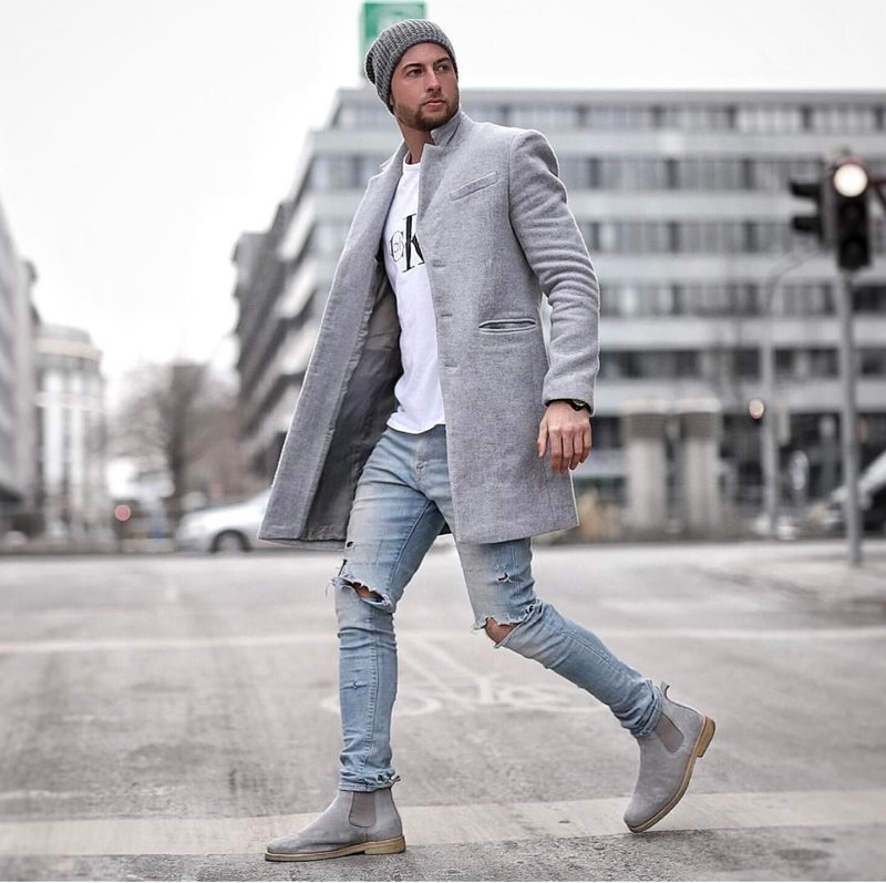 Gri paltoları kot pantolon ve spor ayakkabılarla eşleştirmeyi düşünün. Loafer'lar ve çizmeler orijinal görünecek. Mevsime göre üstten bir kazak, gömlek veya ceket seçmeniz önerilir. Görünümü tamamlamak için bir eşarp ve eldiven giyebilirsiniz.