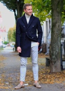 Ayakkabı konusuna gelince çoğu durumda erkekler için dış giyim klasik deri çizmelerle birleştirilir... Spor ayakkabılar ve spor ayakkabılar sadece kısa bir model için uygun olabilir. Ayrıca parlak mokasen veya loafer'lar paltoyla uyumludur.