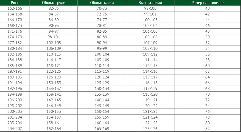 Deneyimli bir satıcının gerekli boyutu önermesi için bu algoritmaya göre hesaplanan ölçüyü adlandırmak yeterlidir. Giysileri kendiniz seçmeyi tercih ederseniz, tablo size yabancı bir üreticiden doğru beden tanımını söyleyecektir.