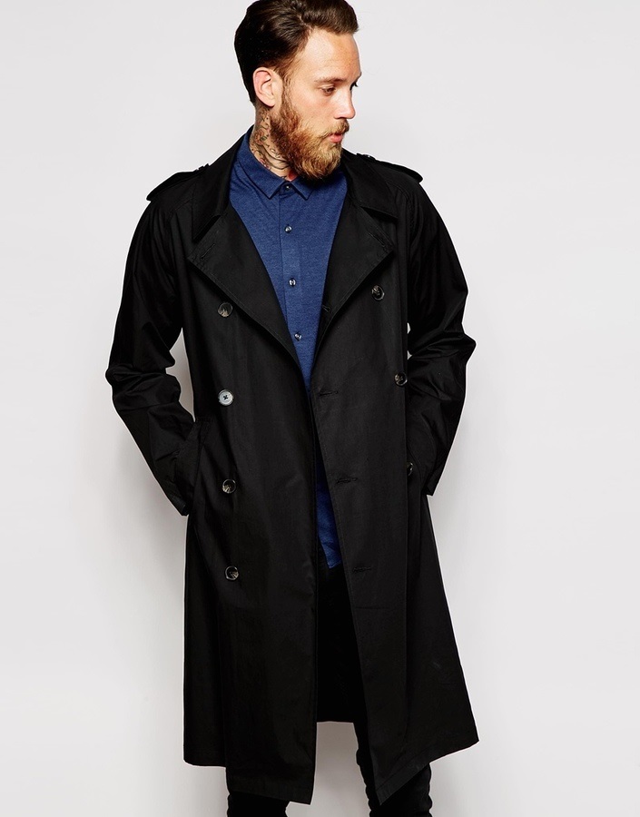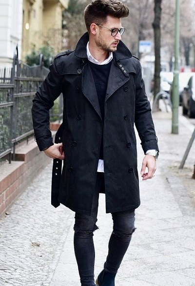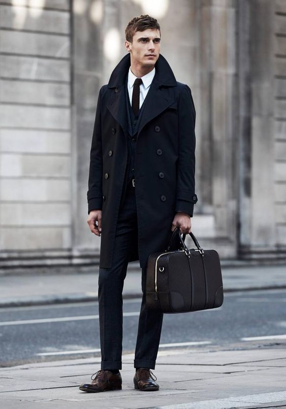 Siyah bir trençkot sokakta, herhangi bir halka açık yerde veya bir etkinlikte, bir iş toplantısında katı ve etkileyici görünüyor.