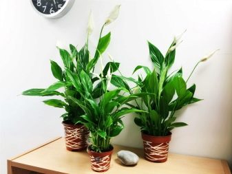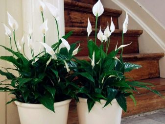 - Spathiphyllum - sıkı bir rozet halinde birleştirilmiş parlak oval veya mızrak şeklinde bazal yaprakları olan çok dayanıklı bir yaprak dökmeyen. Spathiphyllum çiçekleri, kar beyazı eliptik bir battaniyeye sarılmış altın sarısı veya kremsi dikdörtgen koçanlardır.
