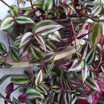Tradescantia bol, tek oval veya mızrak şeklinde yapraklarla kaplı uzun etli sürgünlere sahip, iddiasız, yaprak dökmeyen çok yıllık bir bitkidir. Çeşit özelliklerine bağlı olarak, yapraklar tek renkli (yeşil, mor) veya alacalı, iki veya üç renkli olabilir.
