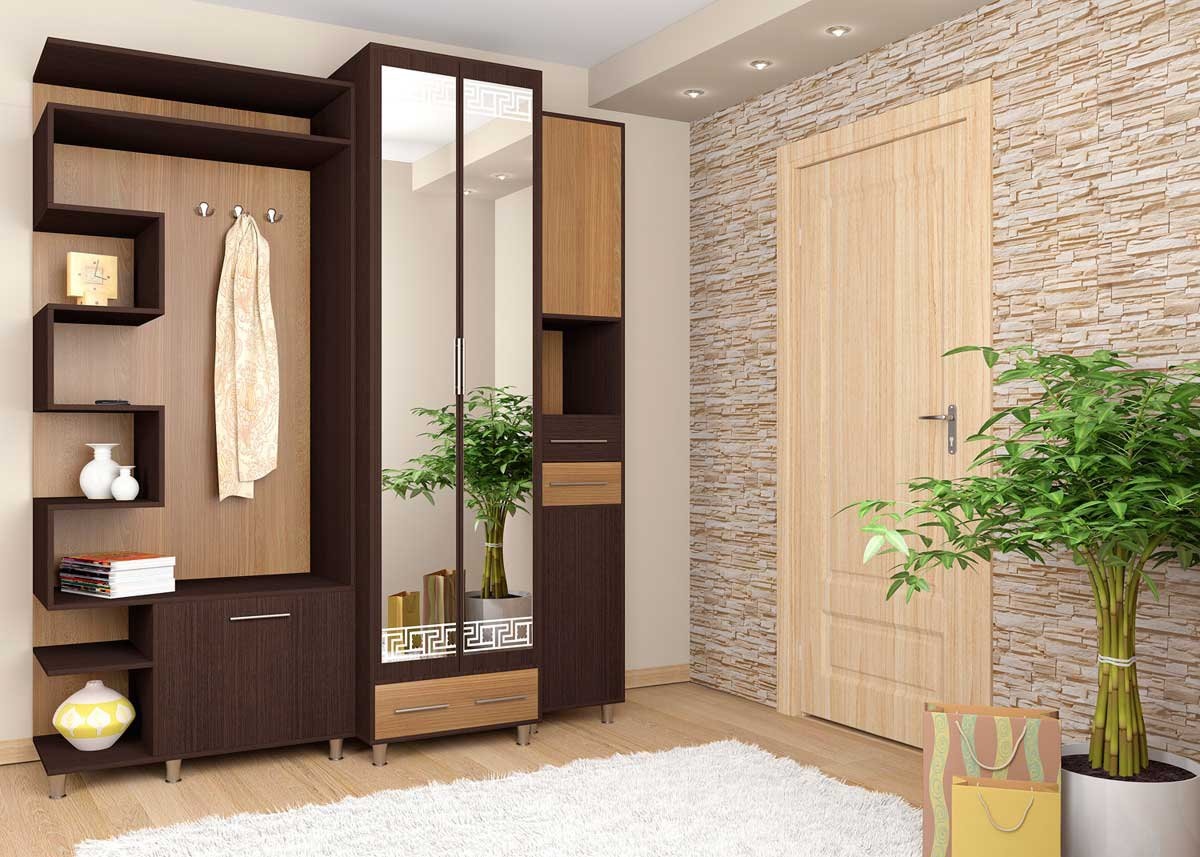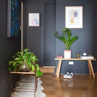 Koridorları ve odaları dekore etmek için, sadece yeterli ışığın olmadığı, ama aynı zamanda boş alan, özel duvar standları kullanabilirsiniz. Bu standların bölümleri, düşük yeşil bitkili saksıları ve her türlü kullanışlı ev eşyasını kolayca barındırabilir.Bu tasarım seçeneği, alanına zarar vermeden karanlık bir koridoru "canlandıracaktır".