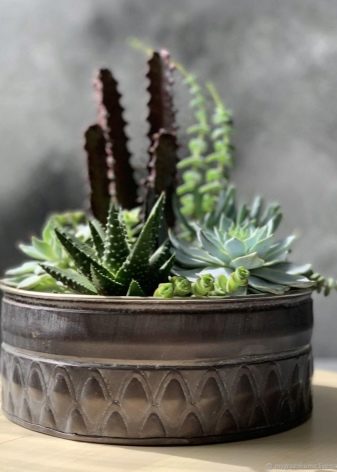 Kaktüsler ve sulu meyveler, karanlık bir koridoru veya oturma odasını dekore etmek için kullanılabilecek, gölgeye dayanıklı, iddiasız bitkilerin bir başka büyük grubudur. Bu nedenle, gün ışığı kıtlığı koşullarında büyümek için çiçek yetiştiricileri çoğunlukla şişman kadınları, haworthia'yı ve ripsalis'i seçer. Bu bitkilerin avantajlarına göre, çiçek yetiştiricileri sadece gölge toleransını değil, aynı zamanda kuraklığa toleransı ve düzenli beslenme ihtiyacının olmamasını da içerir.
