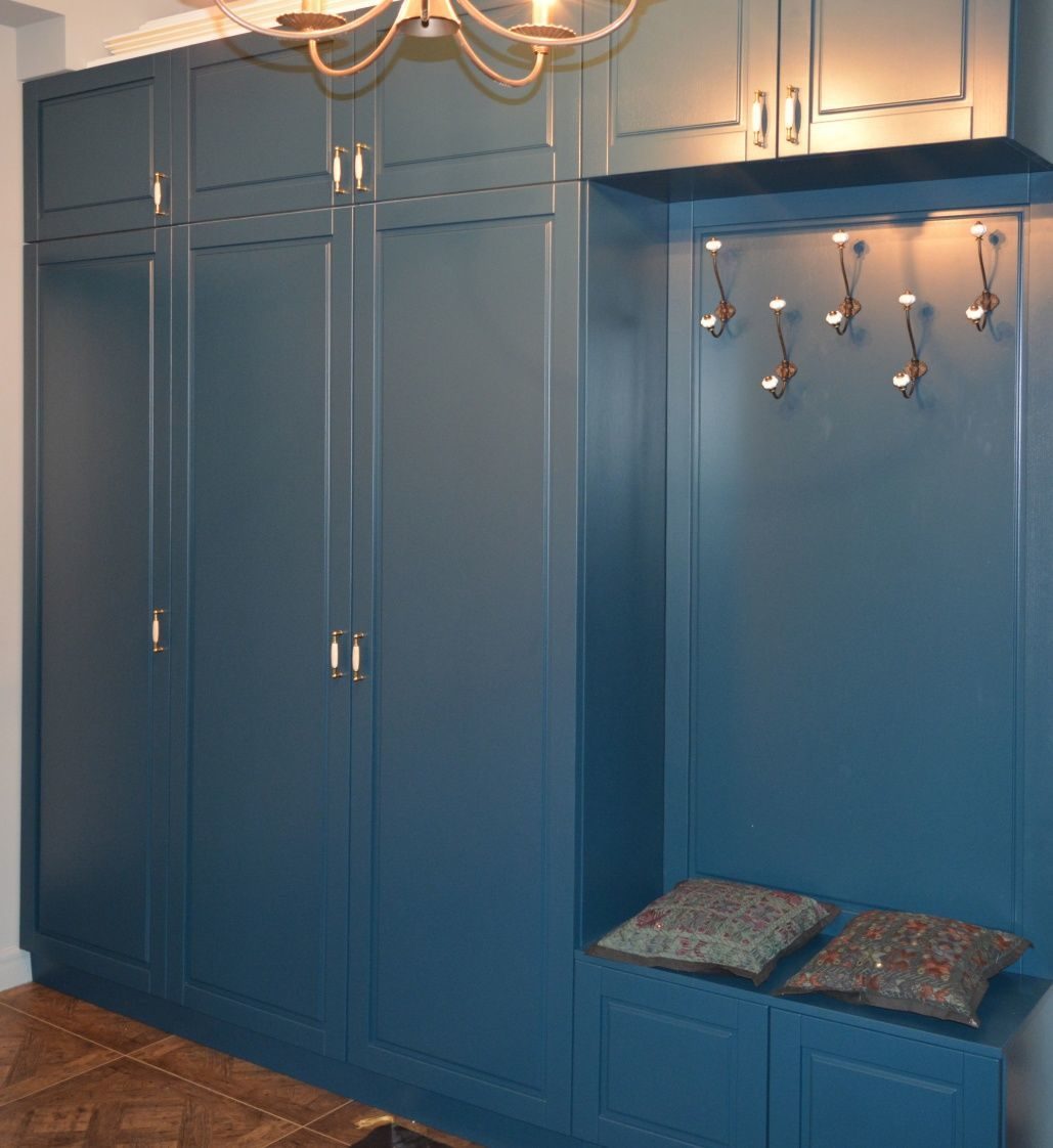 Köşe konumu. Mobilyaları bu şekilde kare bir koridorda düzenlemek uygun olacaktır. Ayrıca, farklı kenarlardan farklı dolap derinlikleri kullanmak da doğru çözüm olacaktır, bu da yerden ve pratiklikten tasarruf sağlayacaktır.