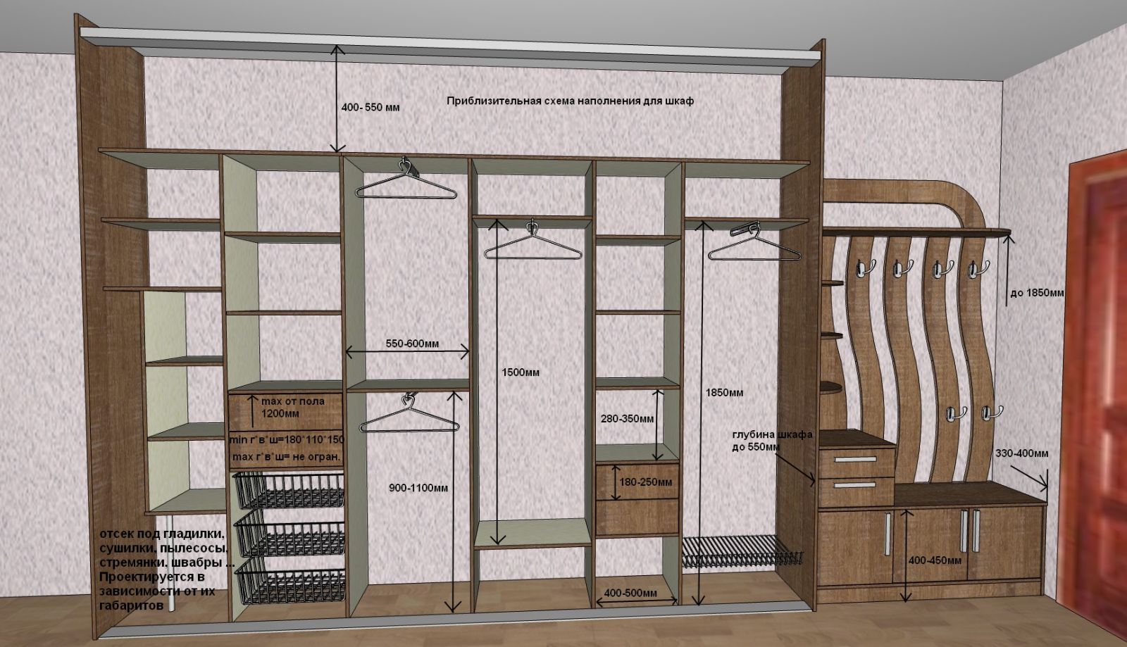 Koridorda bir gardırop seçerken boyut belirleyici bir faktördür. Koridorun alanının "yenilmediğinden" (özellikle uzun bir koridor için bir gardırop satın alırsanız) ve gardırobun içinde eşyaları saklamak için yeterli alan olduğundan emin olmak gerekir.