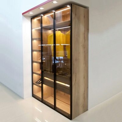 - Bardak - çevre dostu olması ve bakım kolaylığı ile ayırt edilen bir malzeme. Dolapların imalatında, kırıldığında yüzlerce küçük taneye parçalanmamasını sağlayan özel bir filmle kaplanmış cam kullanımına başvururlar.