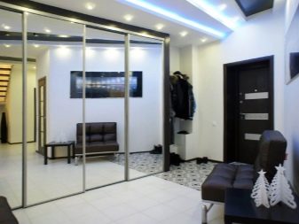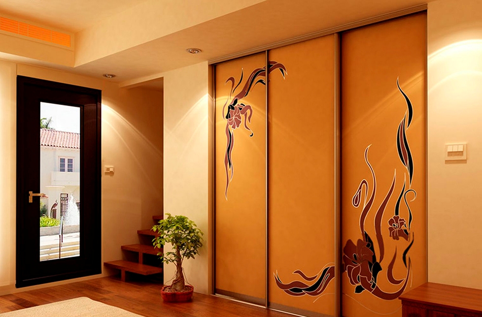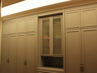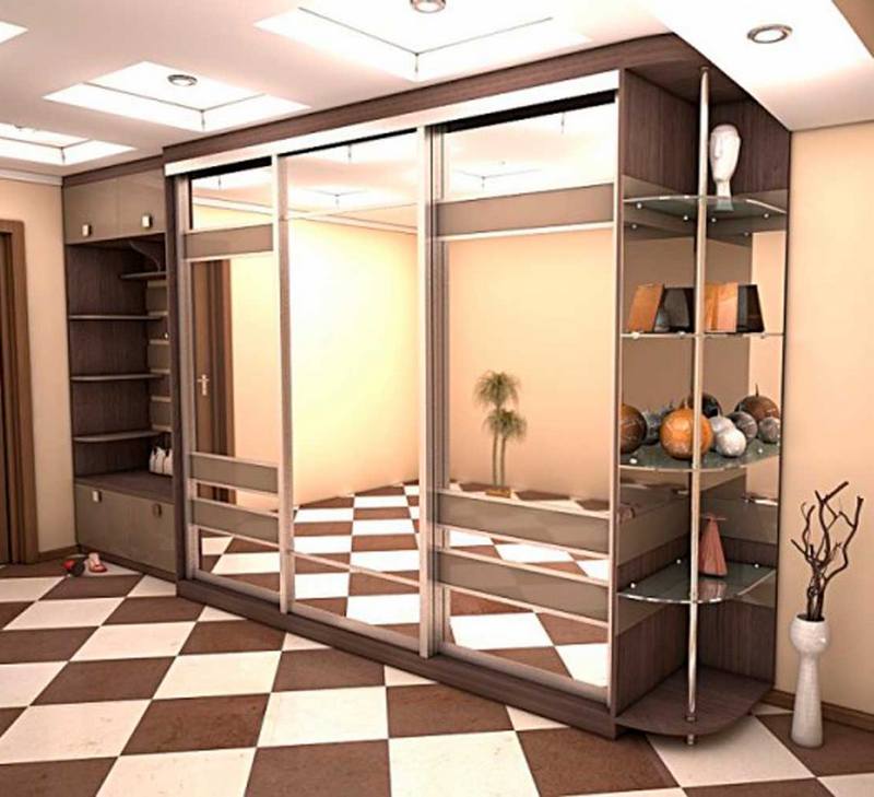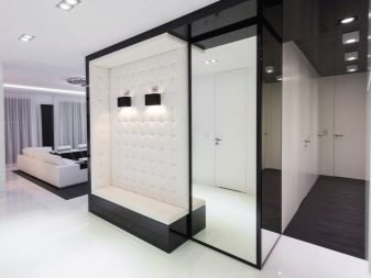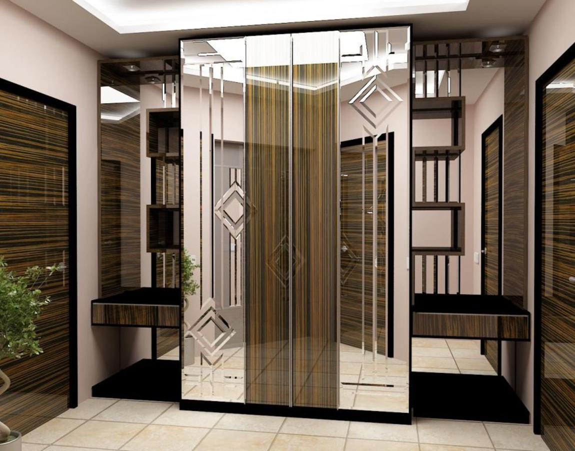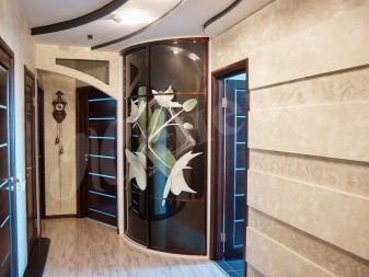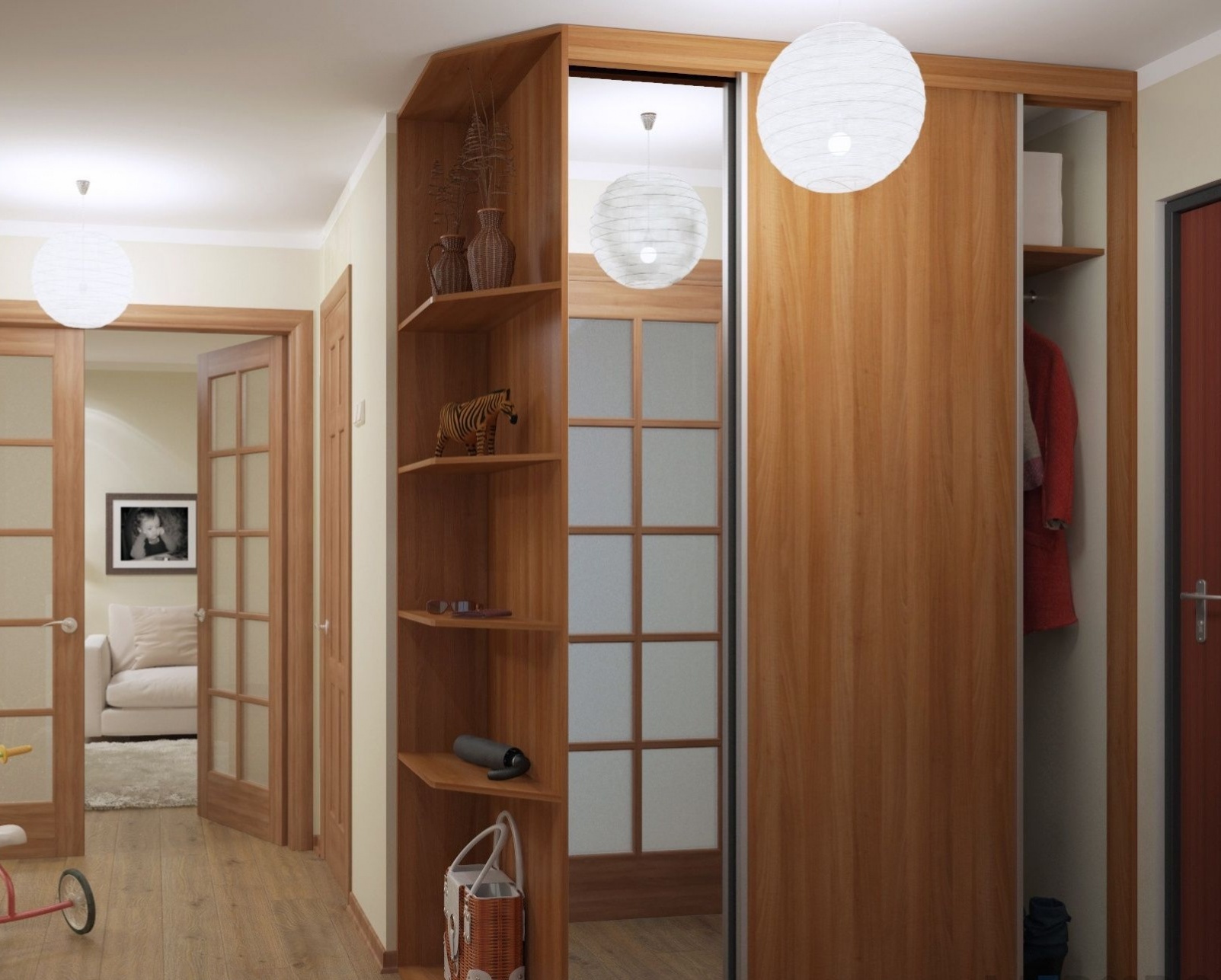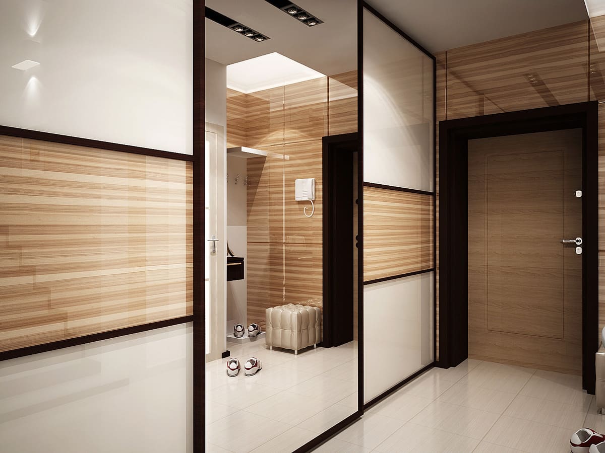 Buzlu kapılar, birçok görsel kusurun ütülenmesi gereken yerlerde iyidir. Çok çekici bir seçenek, yerleşik koridoru aydınlatma sistemleriyle tamamlamaktır. Yerleşik koridordaki belirli mobilya parçaları, stil ve mevcut alan dikkate alınarak seçilir. Daha az alan, daha fazla çok yönlülük anlamına gelir. "Neşeli" tonların kullanımına izin verilir, ancak onlar için aşırı coşku istenmez.