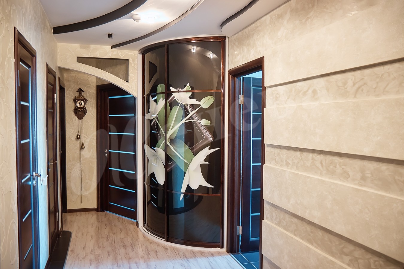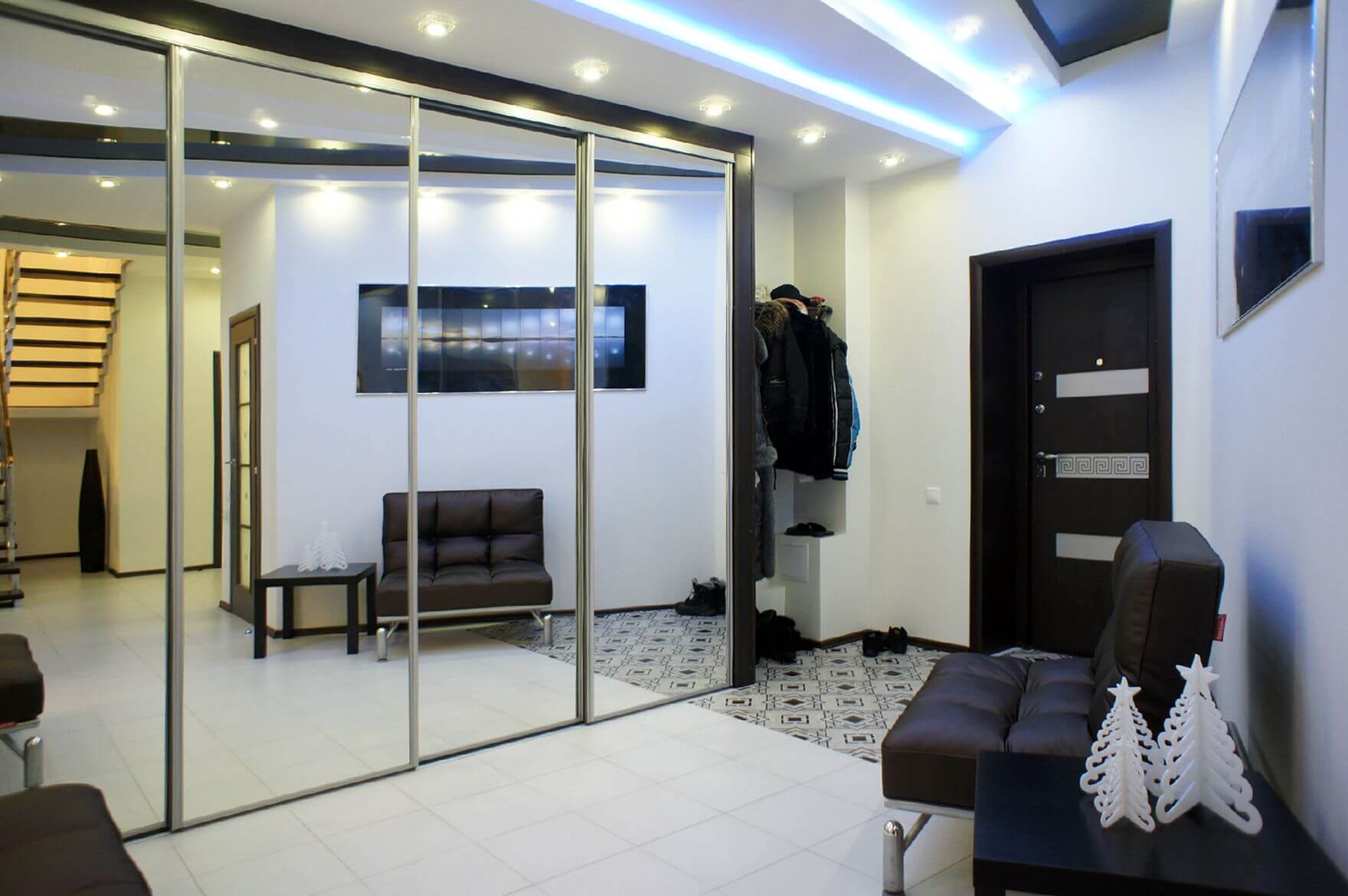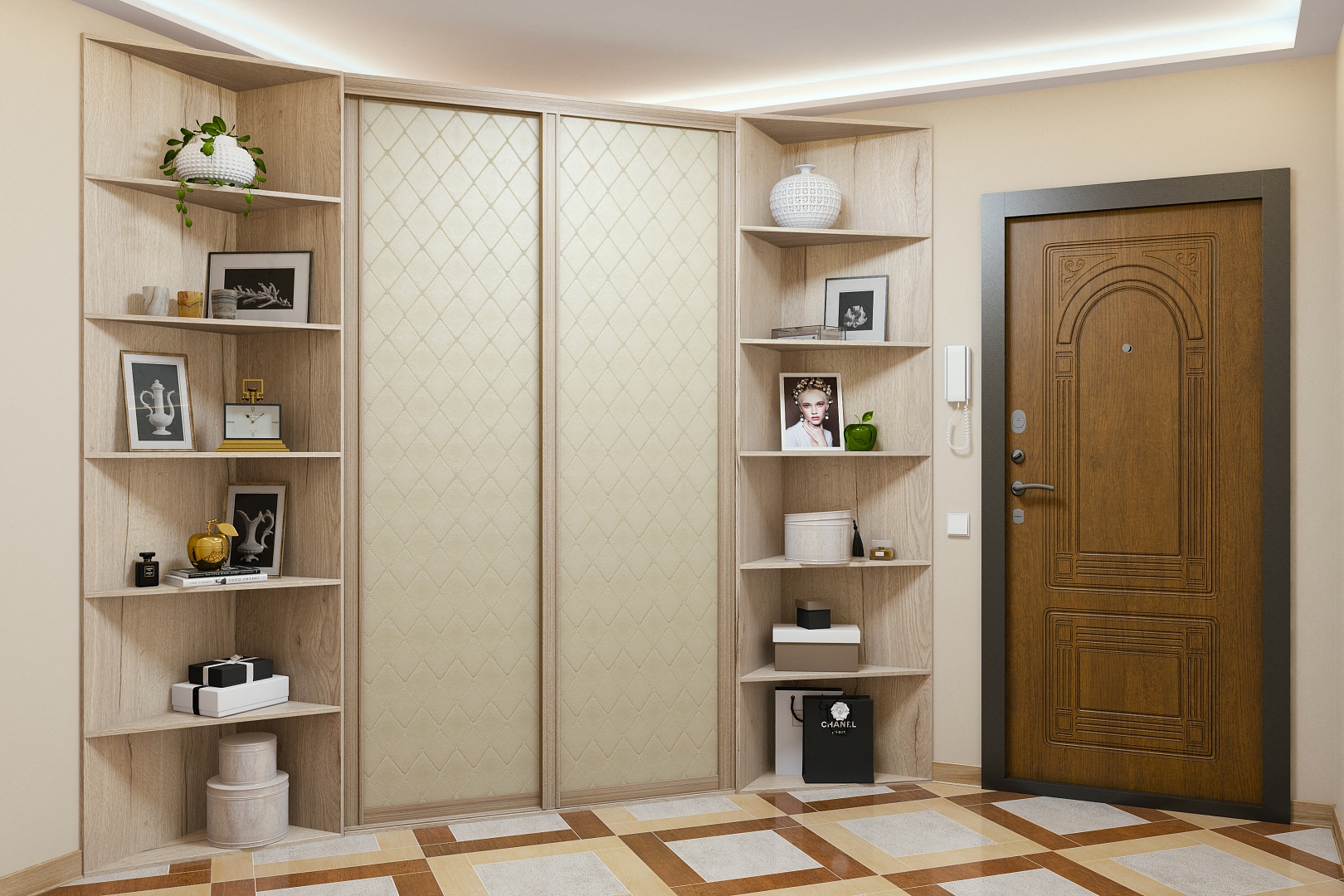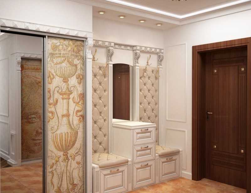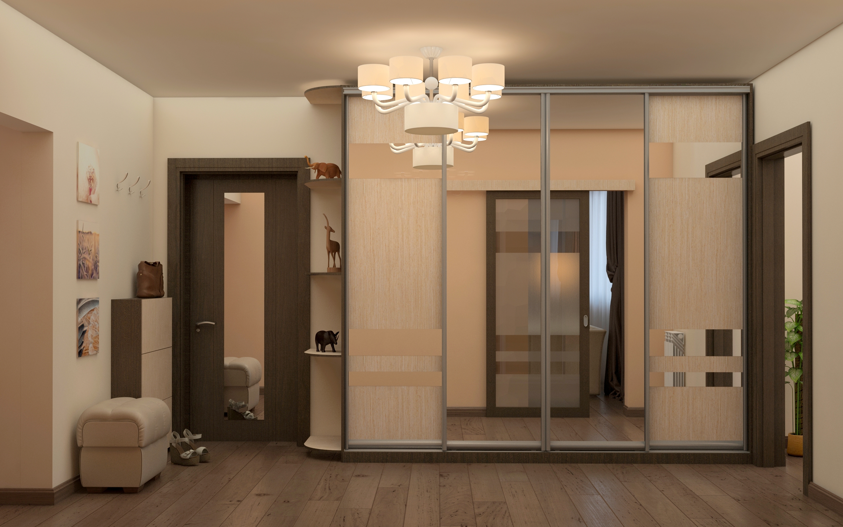 Buzlu kapılar, birçok görsel kusurun ütülenmesi gereken yerlerde iyidir. Çok çekici bir seçenek, yerleşik koridoru aydınlatma sistemleriyle tamamlamaktır. Yerleşik koridordaki belirli mobilya parçaları, stil ve mevcut alan dikkate alınarak seçilir. Daha az alan, daha fazla çok yönlülük anlamına gelir. "Neşeli" tonların kullanımına izin verilir, ancak onlar için aşırı coşku istenmez.