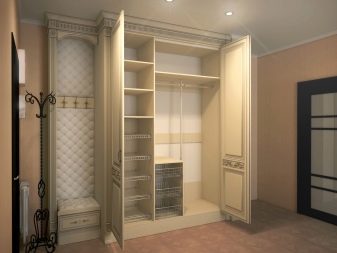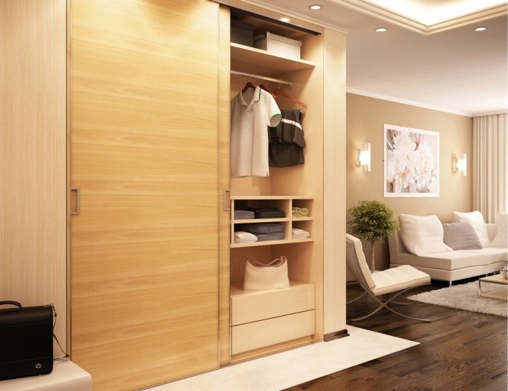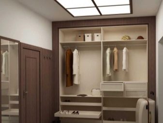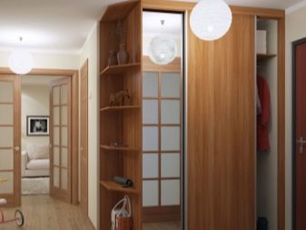 Yerleşik koridoru karakterize ederken, belirtilmelidir ki benzer dolaplar üst veya arka duvar içermez... Bu nedenle, geleneksel seçeneklerden çok daha kolay ve basittirler. Elbette tasarımcılar yan duvarlardan vazgeçerse ürün daha da hafifliyor. Garantili bir niş içine sığabilecektir. Ürünlerin nispeten küçük boyutu, küçük boyutlu koridorların donatılmasını mümkün kılar.
