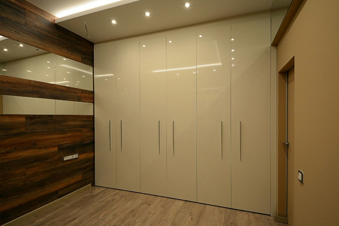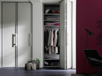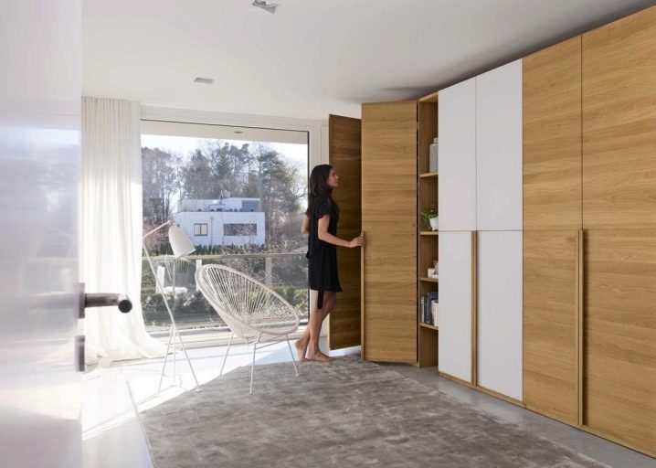 Ve yine de her yerde kullanılmazlar. Ana sorun katı maliyettir.Ve bu ürünü herhangi bir iç mekan stiline sığdırmak mümkün olmayacak. Kapıları tek bir düzlemde hareket ettirmek yerden tasarruf sağlar. Küçük odalarda bu durum çok önemlidir.