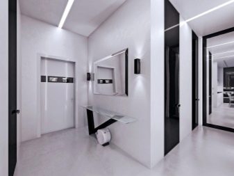 Bir tasarım çözümü seçerek, özgünlüğü göstermek mümkündür ve gereklidir - ancak yalnızca belirli sınırlar içinde. Evin tüm binalarının tasarımının tek veya tamamlayıcı bir tarzda tasarlanması daha iyidir.... En küçük koridorlar açıkça minimalist bir yaklaşım veya yüksek teknoloji tasarımı içerir. Ayrıca mümkün olduğunca çok ayna yüzeyi eklemeniz önerilir.