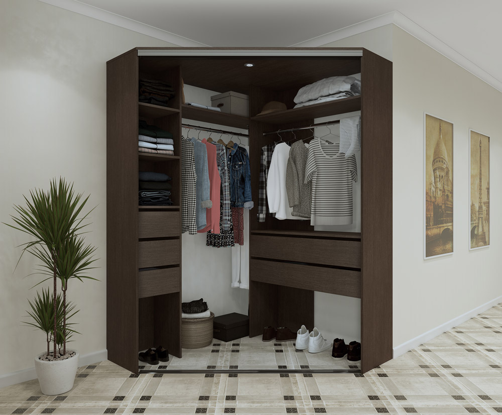 Çok şey saklamayı planlıyorsanız, etkileyici bir dolap olmadan yapamazsınız. Hem raflar hem de çekmeceler içeriyorsa daha iyidir.