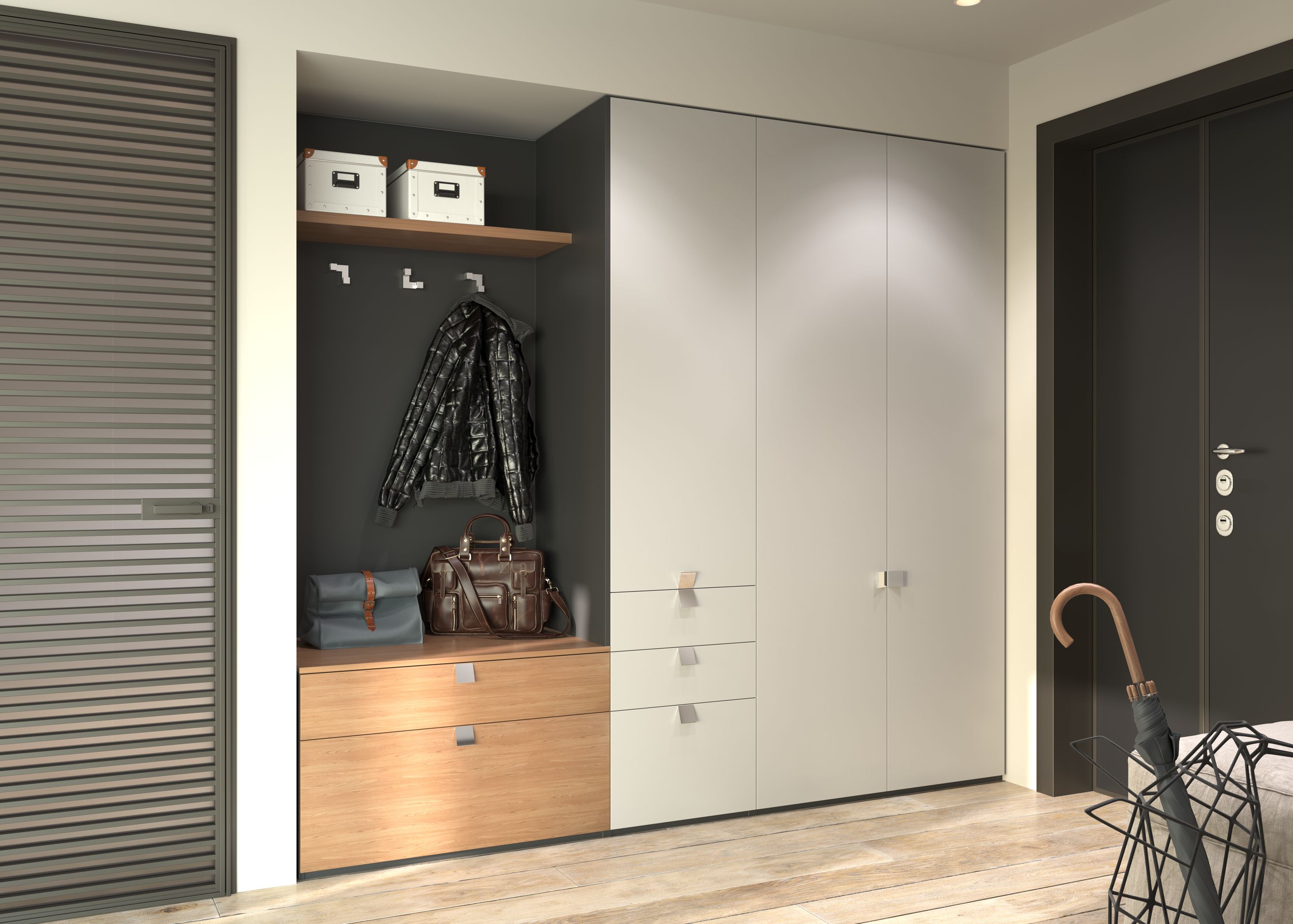 Koridordaki dolap mobilyaları çeşitli malzemelerden yapılabilir. Uygun tiplerini belirlerken şunlara dikkat edilmelidir: