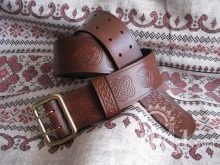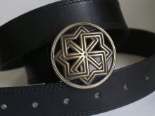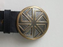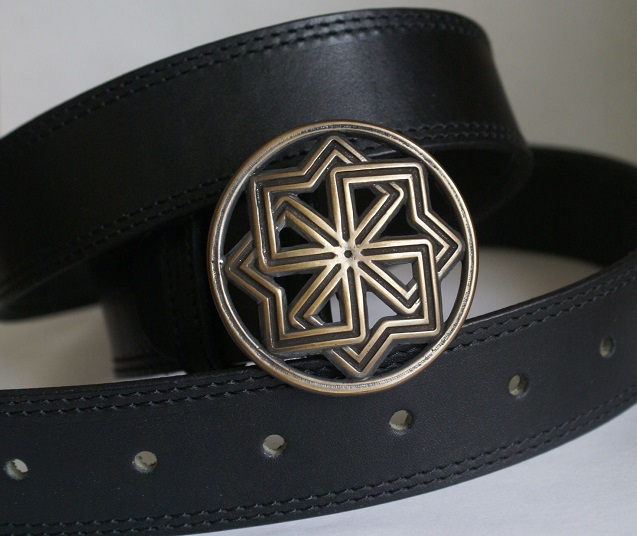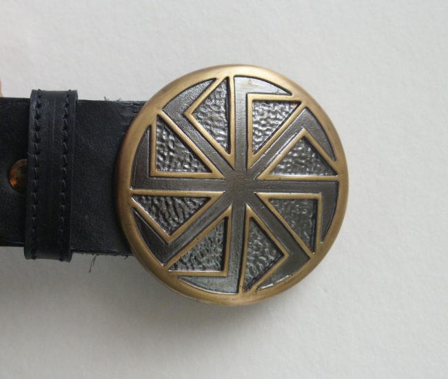 Bu kemer, tıpkı kovboy kemeri gibi, örneğin Kolovrat cinsinin sembolü veya otların üstesinden gelen büyük bir dikkat çekici toka ile ayırt edilir. Kemerin kendisi genellikle rünler veya desenlerle yakılır. Bazen böyle bir kemer, işlemeli dua veya örgülü sembollerle kumaştan yapılır.