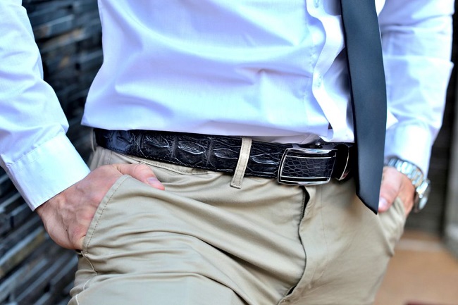 Klasik tasarımlı erkekler için deri kemer pantolonları korumak ve iş etiğini korumak için gerekli... Bu nedenle, pantolonlarda kemer halkaları varsa (bir kemerin yerleştirildiği delikler), bir kemerle giyilmelidir.