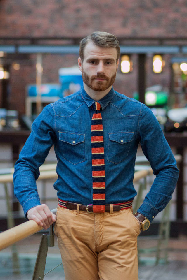 Oxford gömleğinizi uzun bir kot gömlekle değiştirirken klasik takım elbiseniz ve kravatınızla oynamanız gerekiyor. Kesik yakalı, ince kumaştan yapılmış bir gömlek seçtiğinizden emin olun.
