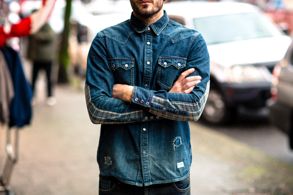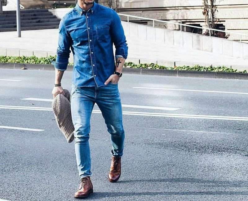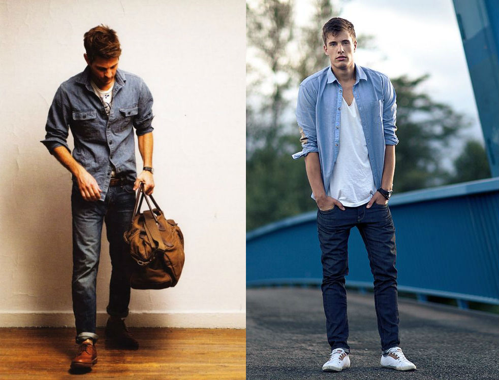 Denim gömleğin kendisi erkek gardırobunun çarpıcı bir unsurudur. Uyumlu bir yay oluşturmak için nelerin eklenebileceğini düşünün.