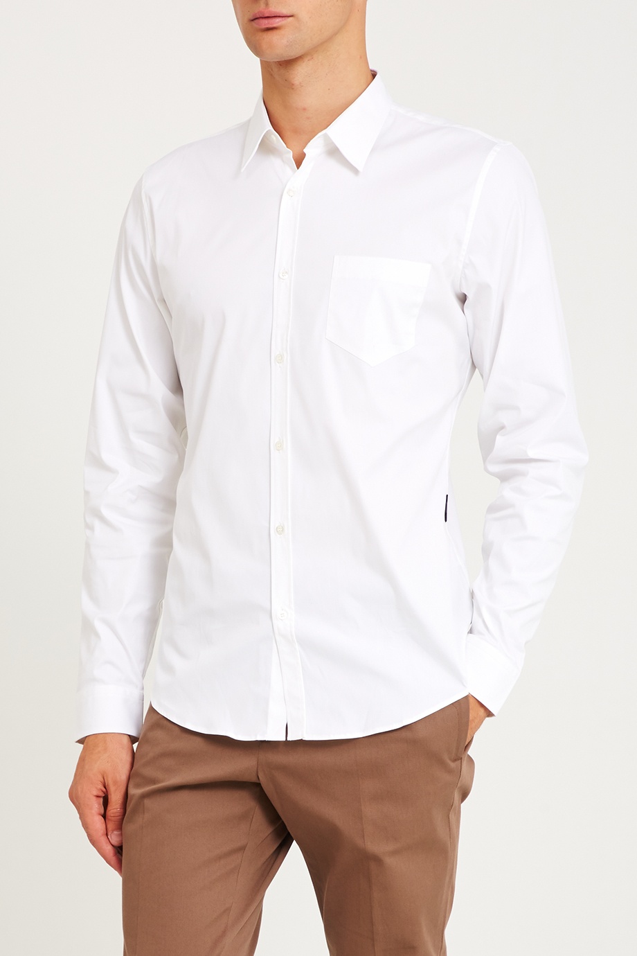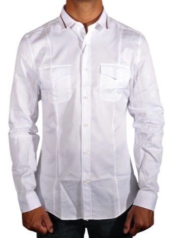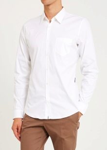 - Klasik tarz kar beyazı bir gömlektir. Bu model düz kesim, kalın malzemeden yapılmış devrik yaka ve manşetli uzun kolludur. Gömlekler, aynı üreticinin mavi şemsiye takımları ve deri botlarla iyi gider.