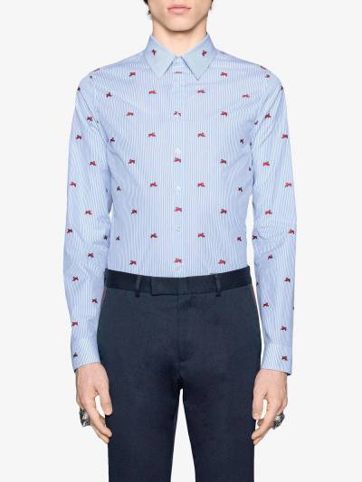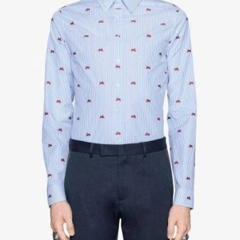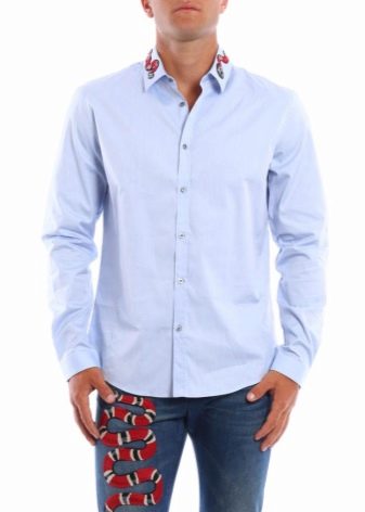 - işlemeli gömlekler uzun zamandır kadınların ayrıcalığı olarak kabul edildi. Bugün Gucci koleksiyonundaki birçok erkek gömleği işlemelerle süsleniyor. Baskı manşetler, yaka, sırt veya omuz bölgesine yerleştirilebilir.