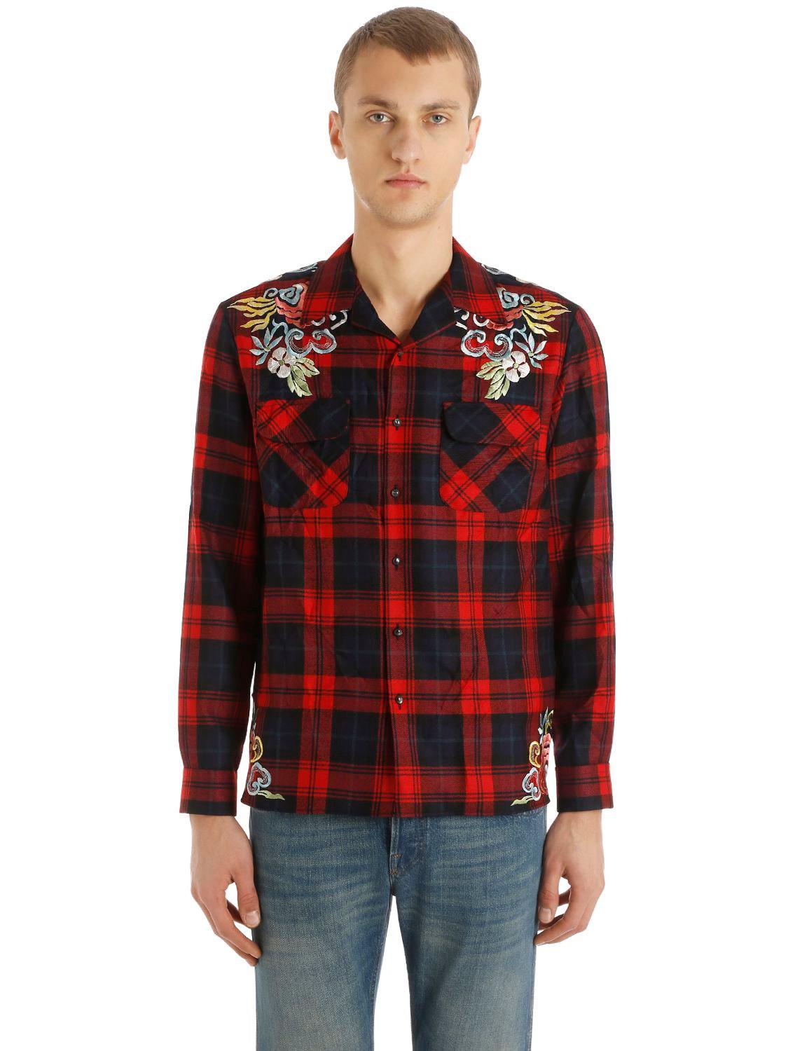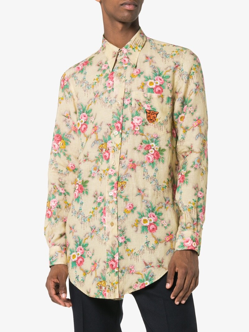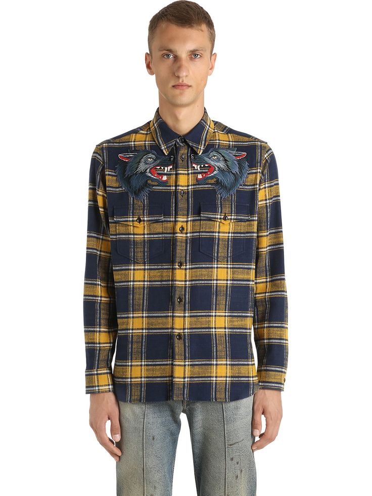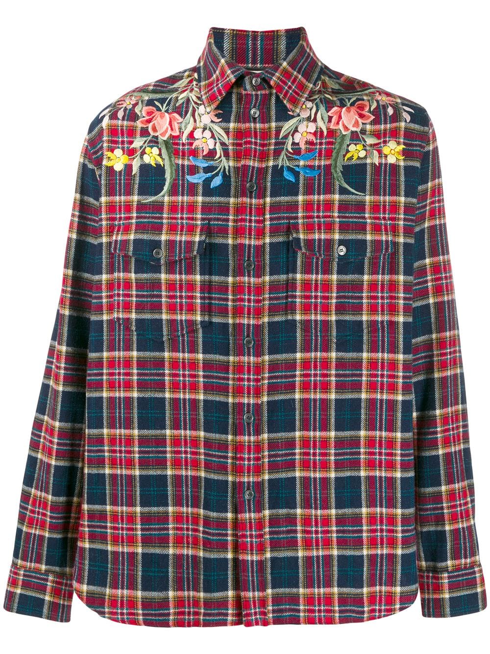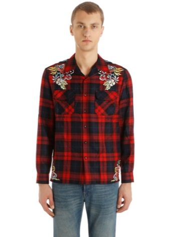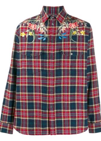- Gucci'nin imza stili çiçek işlemeli kareli gömlek... Bu modeller bol kesim, bir çift yama cep ve sivri yaka ile ayırt edilir.