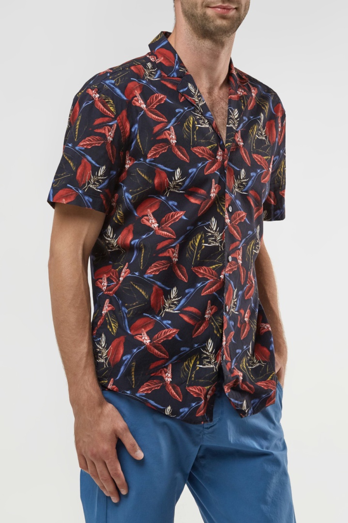 - Çiçek desenli ürünler. Kısa kollu, çentikli yakalı ve parlak çiçek desenli bol kesim gömlek çok popüler.
