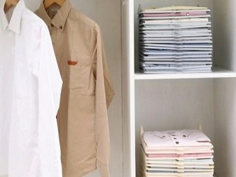 Genellikle gömleklerin özel trempellere (giysileri asmak için cihazlar - plastik, ahşap veya metalden yapılmış) - ve tercihen her biri için 1-2'den fazla olmaması önerilir. Ancak taze ütülenmiş şeyleri asmak için yeterli alan yoksa, raflara konur.