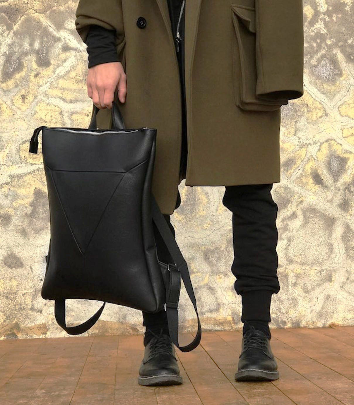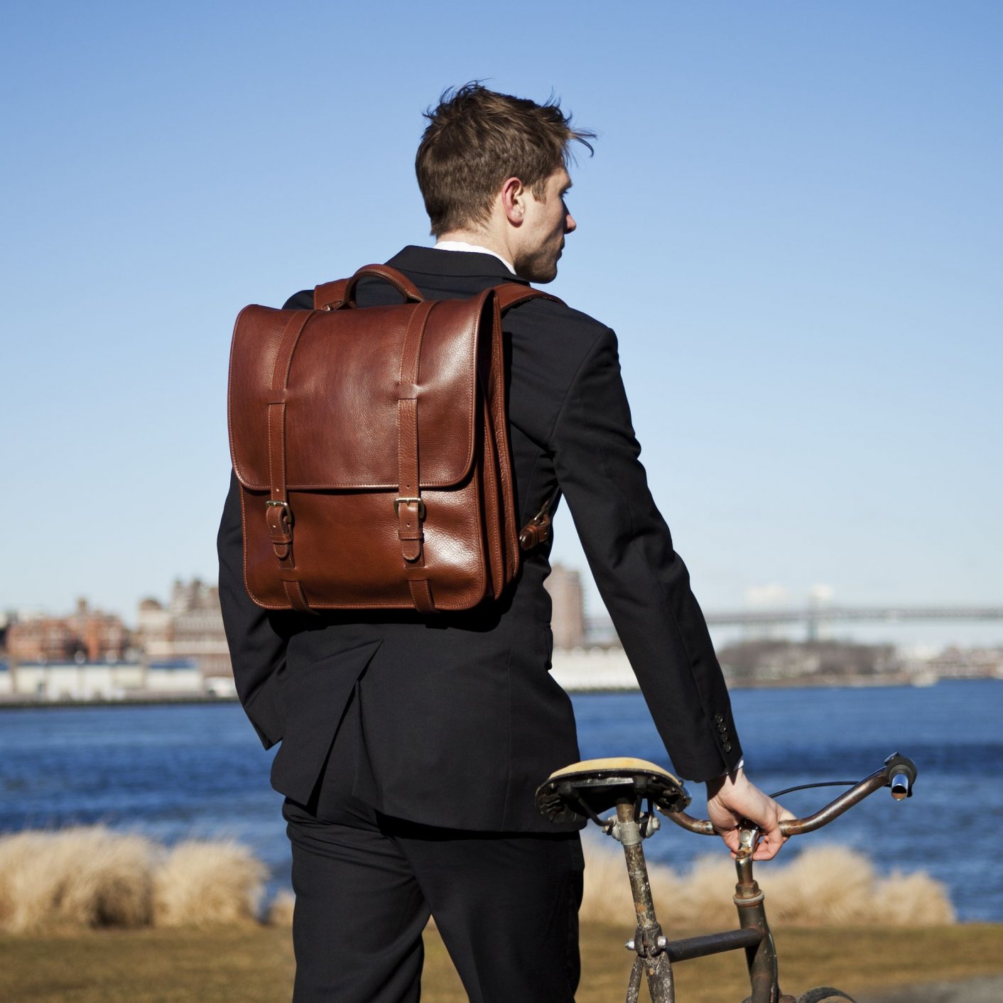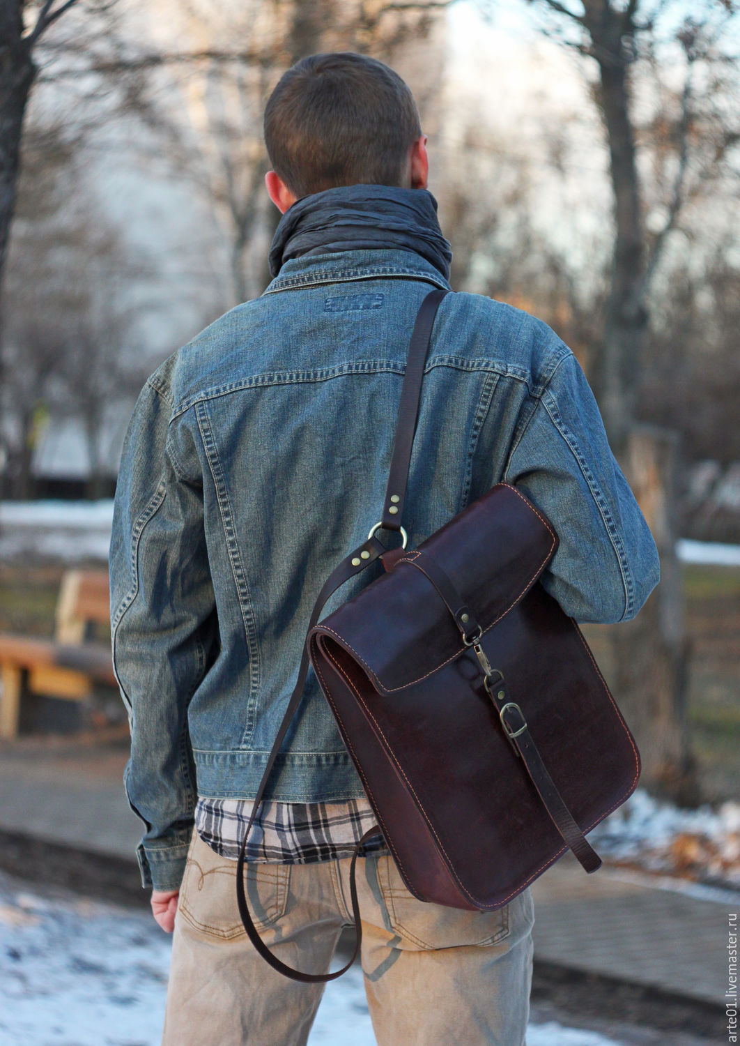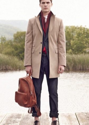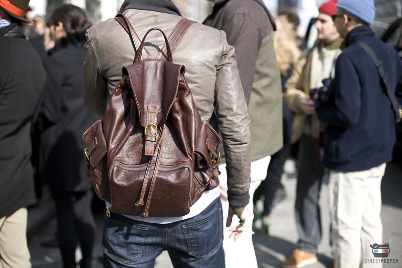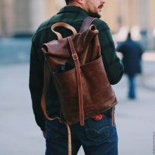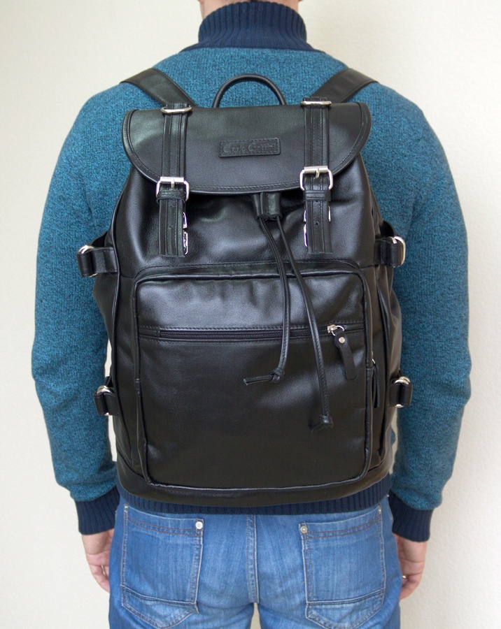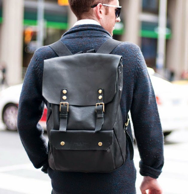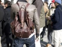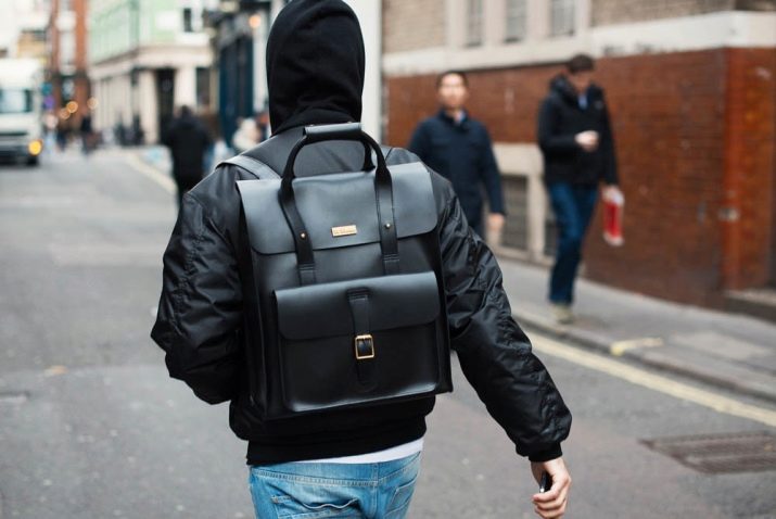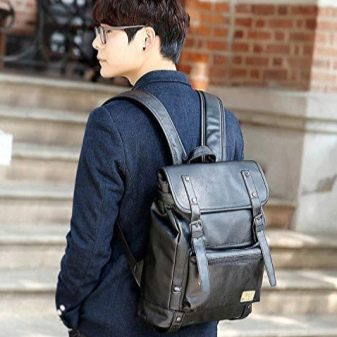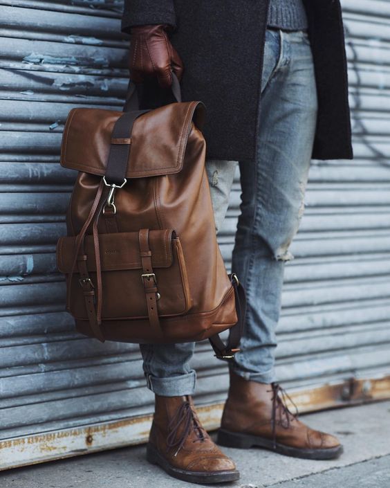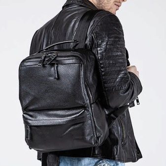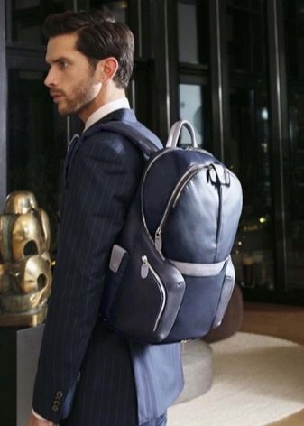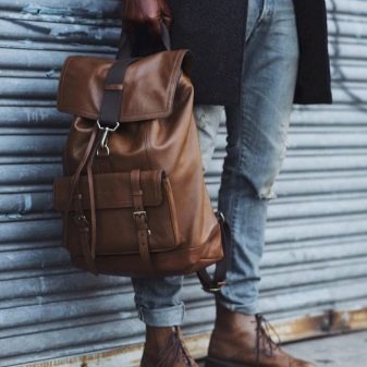 Bir erkek, farklı giysilerle deri bir sırt çantası takabilir. Bu durumda doğru renk ve stili seçmek gerekir. Görüntü tam ve yüksek statülü olmalıdır. Stil çeşitlendirilebilir.