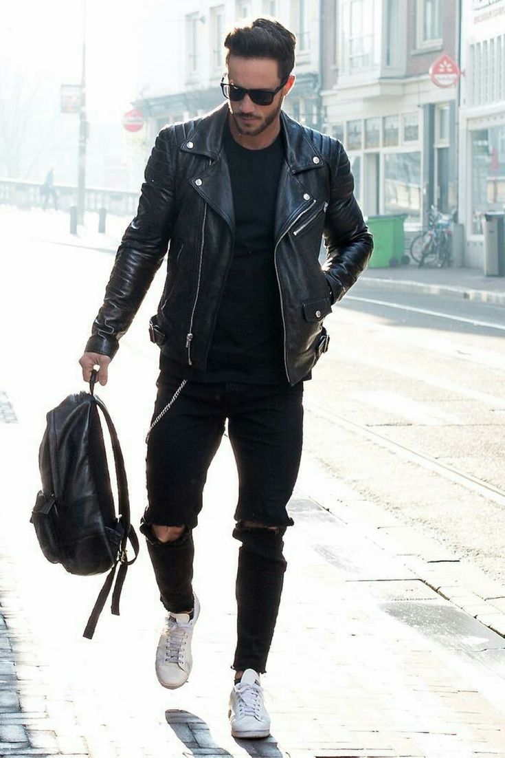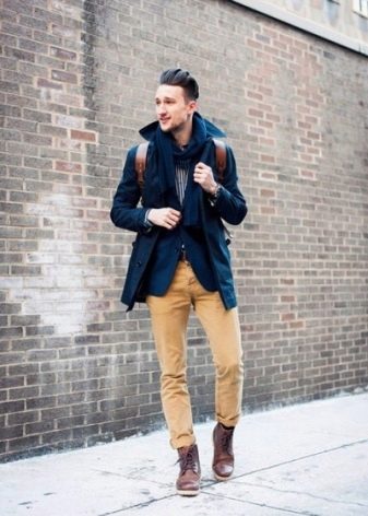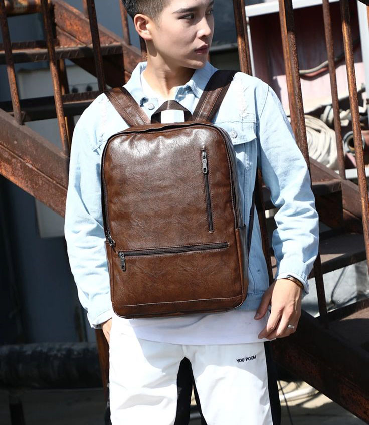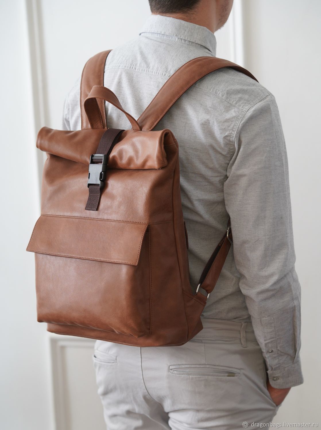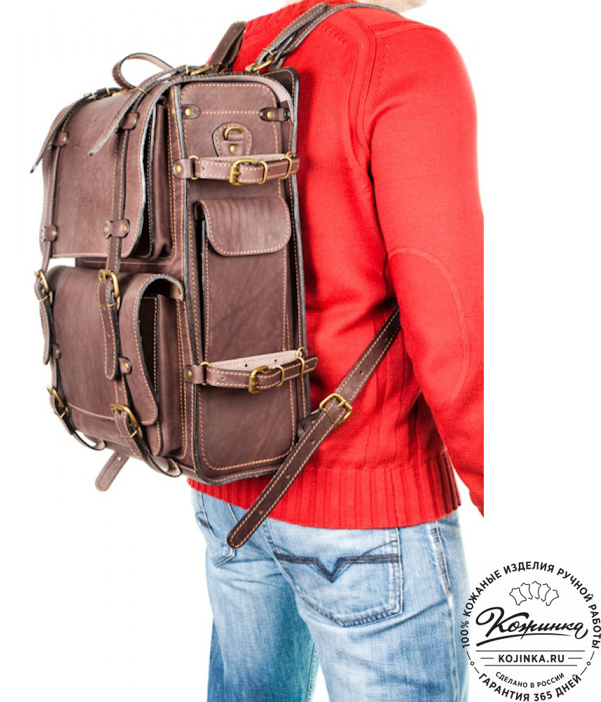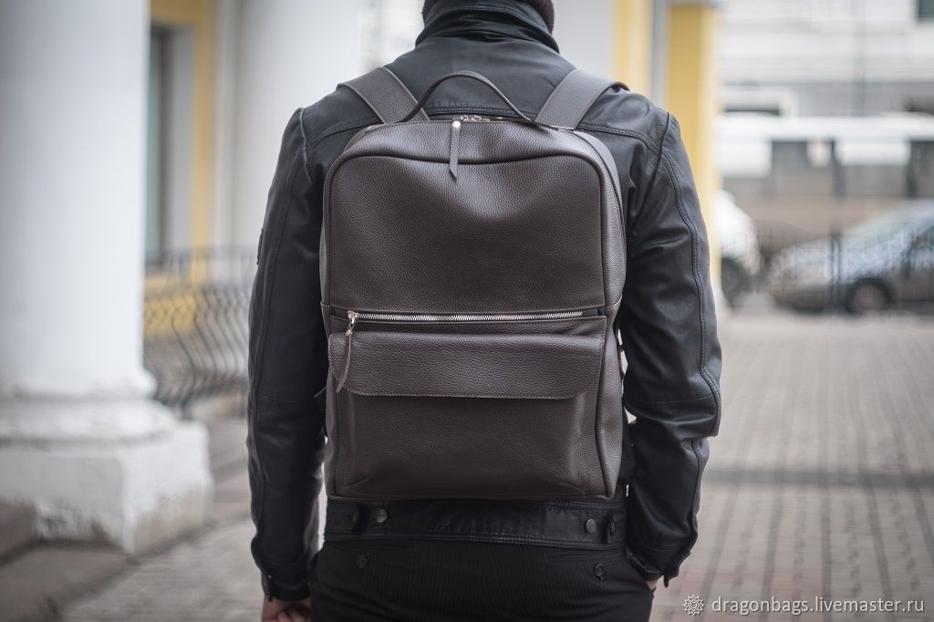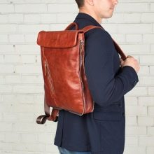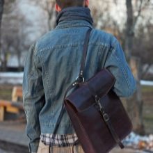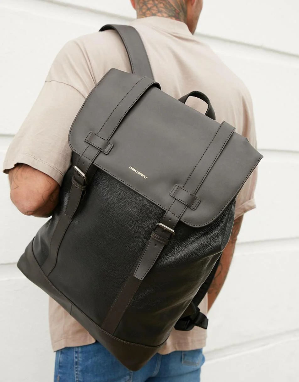Bir erkek, farklı giysilerle deri bir sırt çantası takabilir. Bu durumda doğru renk ve stili seçmek gerekir. Görüntü tam ve yüksek statülü olmalıdır. Stil çeşitlendirilebilir.