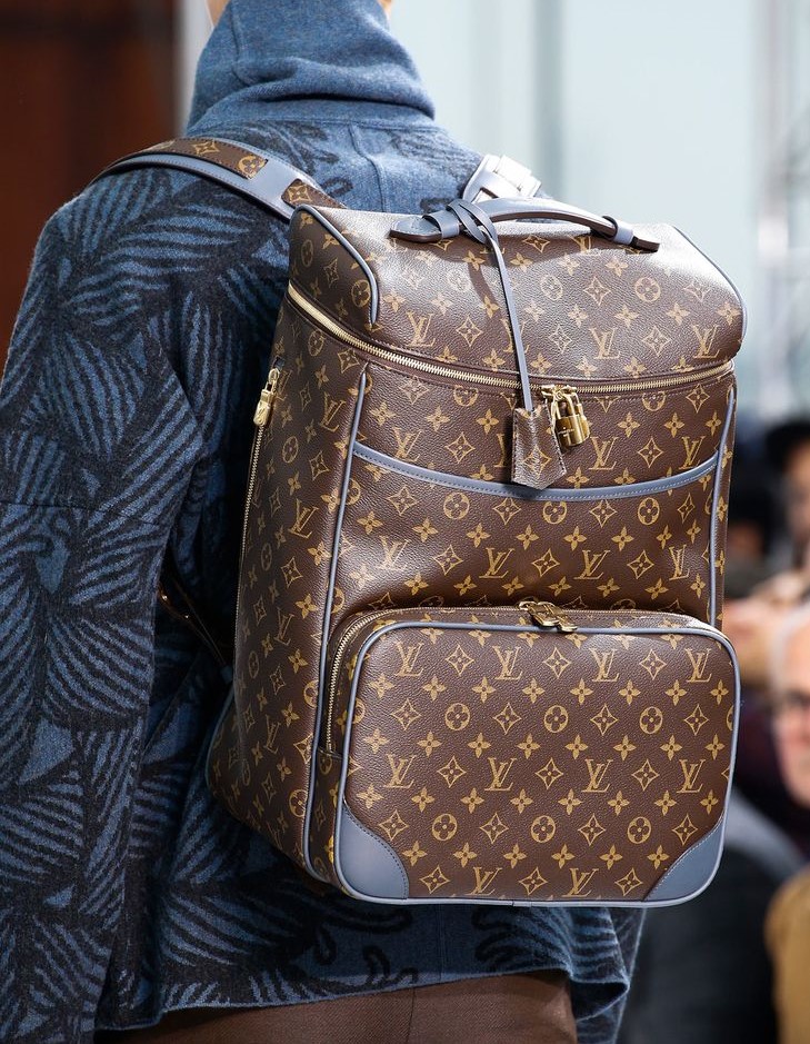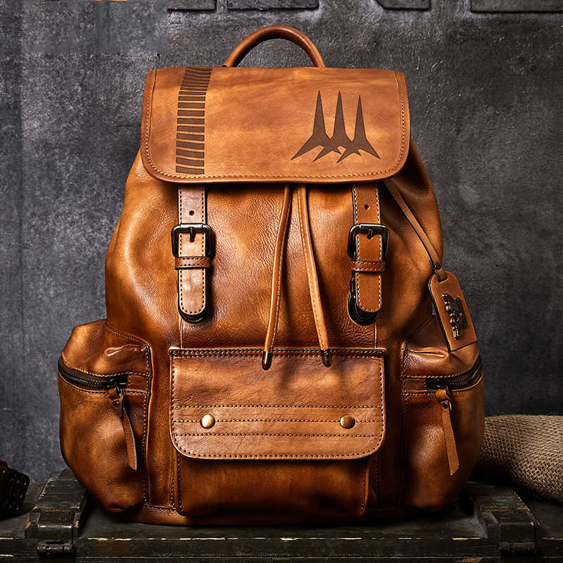 Erkek sırt çantalarının baskıları farklıdır. Bu, hakiki derinin karakteristik kabartmalı deseni ve bir markanın tanınabilir baskısıdır. Ayrıca bir ticari marka logosu olabilir.