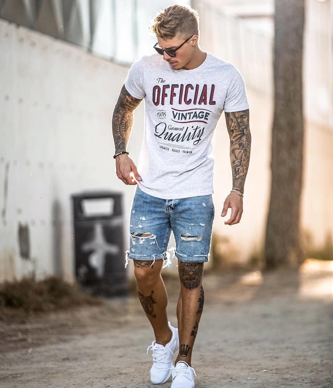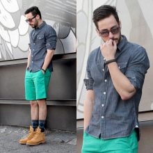 Renkli şortlar, figürlerinden şikayeti olmayan erkeklerin vazgeçilmemesi gereken tanıdık bir giysidir. Fazla kilo varsa, şort sadece varlığını vurgulayacak ve bunu en karlı şekilde yapmayacaktır. İyi örneklerden ilham alın ve hafif yaz görünümlerinde kendi çekiciliğinizin tadını çıkarın!