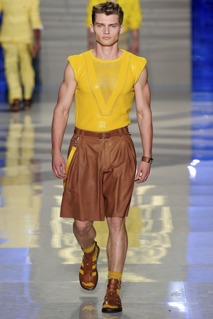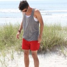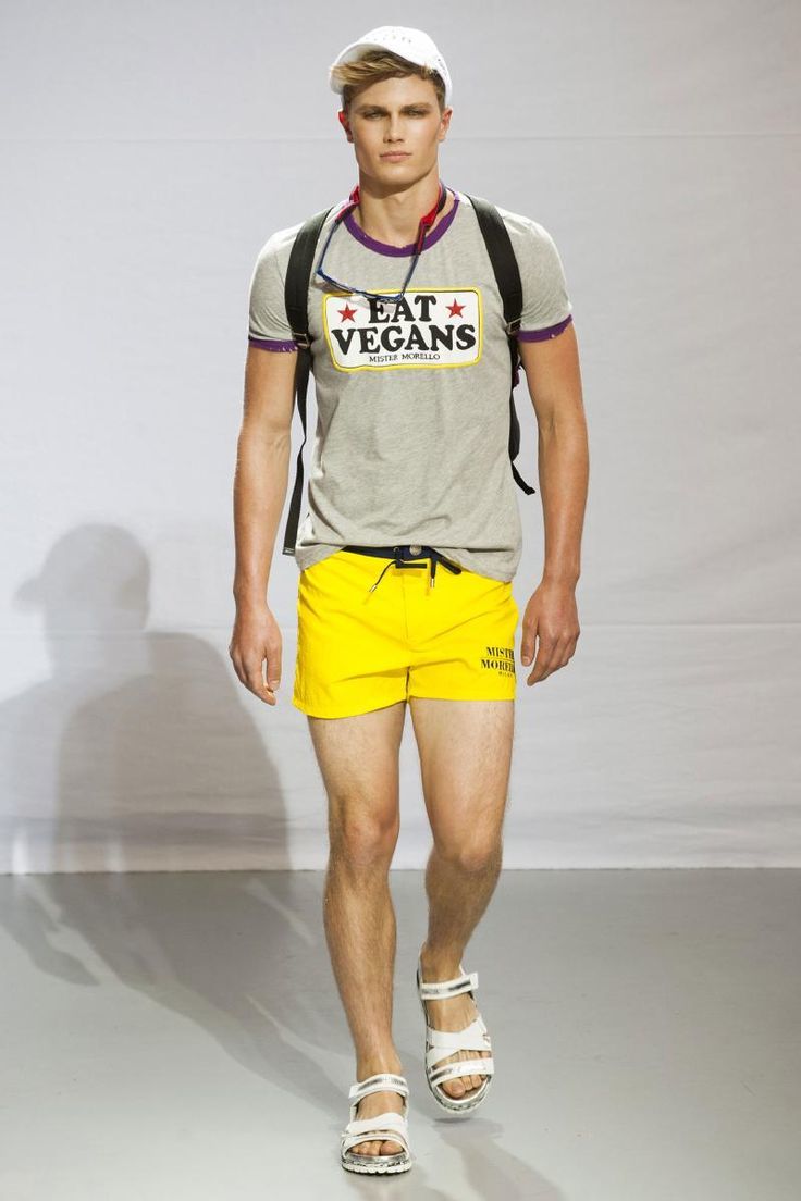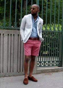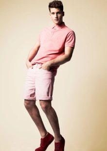 - “Erkek” ve “dişi” renklerin olmadığı gerçeğinin canlı bir örneği. Koyu pembe şortlar, modelin imajının erkekliğini etkilemedi, ancak neşeli yaz yayına bir ek oldu.