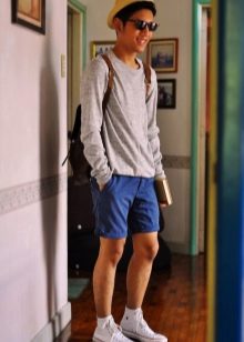 - Görüntüye "iyi bir aileden bir çocuk" denir. Kusursuz açık renkli gömlek, gri çizgili şort ve gri ayakkabılardan oluşan kusursuz bir takım. Kışkırtıcı hiçbir şey, agresif cinsel hiçbir şey yok - bazı durumlarda böyle bir yay iş etkinlikleri için bile uygundur.