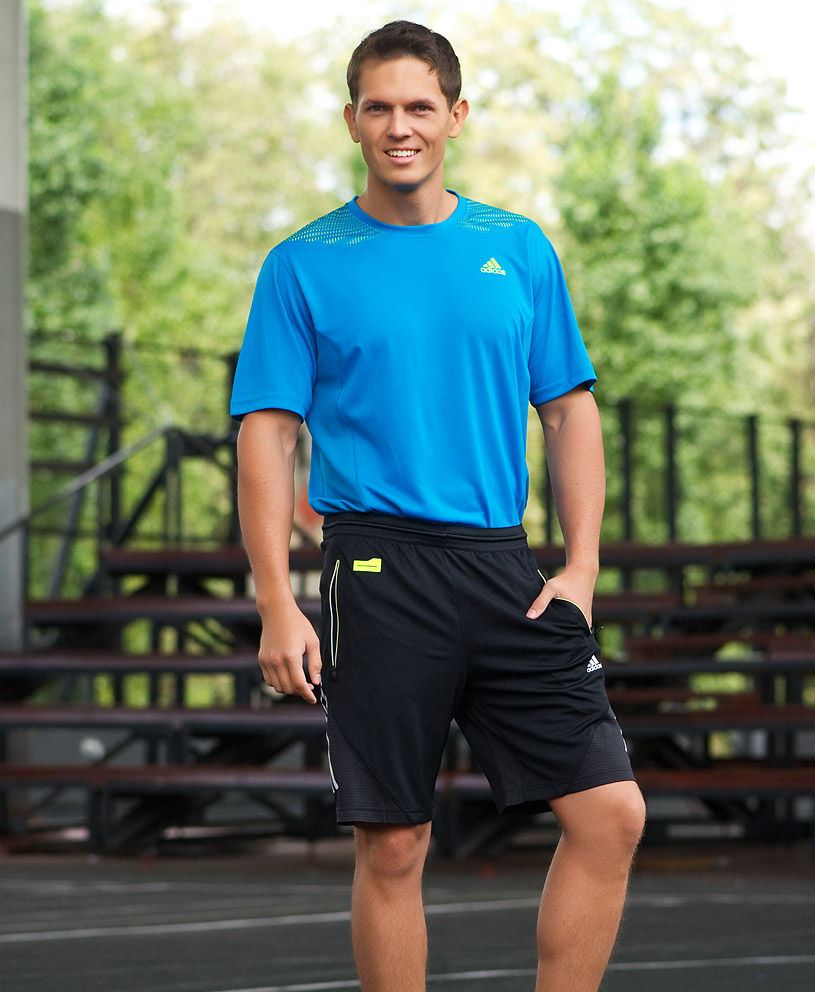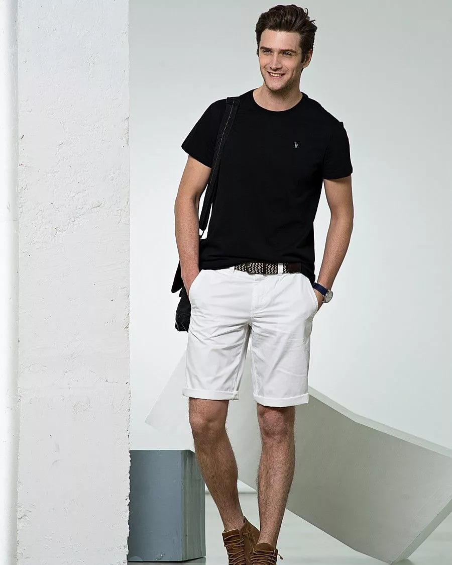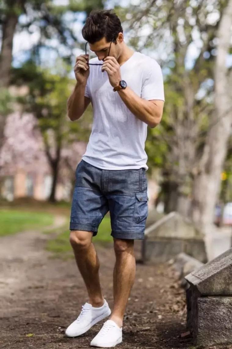 - Kısa yakışıklı erkekler için kırpılmış şortlar alakalı hale gelecektir. Bu model özellikle kaslı sporcular için iyidir. Ancak, "güçlü adamlar" çok parlak baskıyı reddetmelidir. Daha kısa boylu erkekler için dikey çizgili ürünleri tercih etmek daha iyidir. Bacakları görsel olarak "gererler".