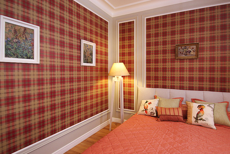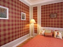 - Damalı duvar kağıdı. Yatak odası dekorasyonu için bu tür kaplama malzemeleri nadiren seçilir. Birçok insan için kafes yeterince çekici ve şık görünmüyor. Düşük popülariteye rağmen, odanın ülke tarzında yapılıp yapılmadığını böyle bir bitirme seçeneği dikkate almaya değer. Kafes bu tarz yön için mükemmel uyum sağlar.