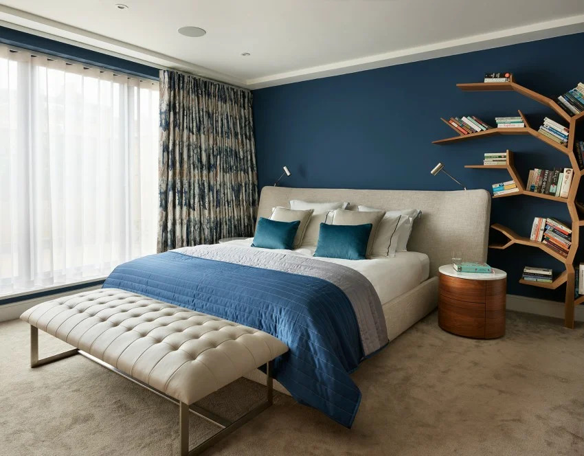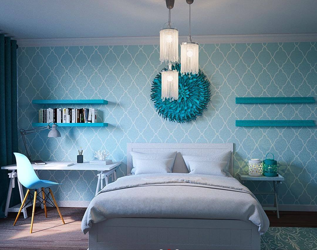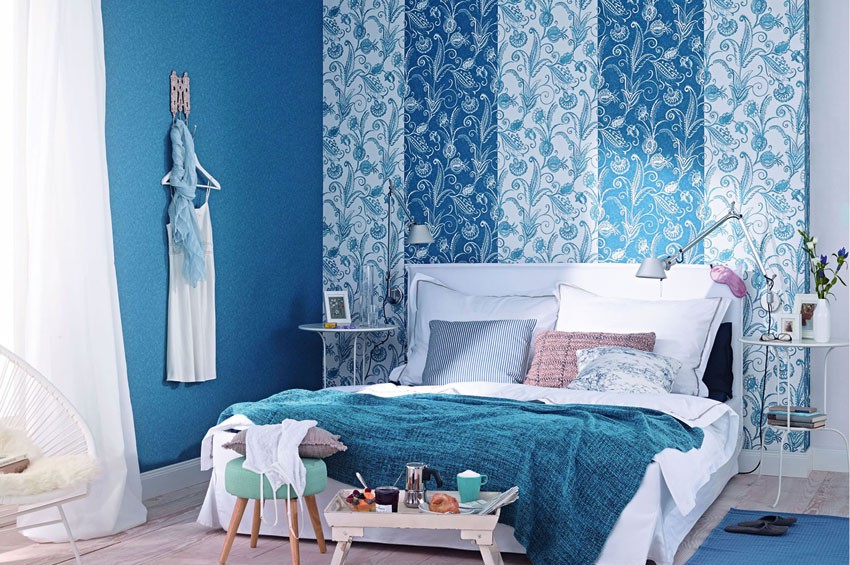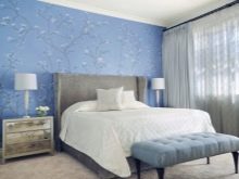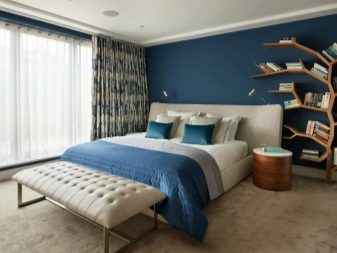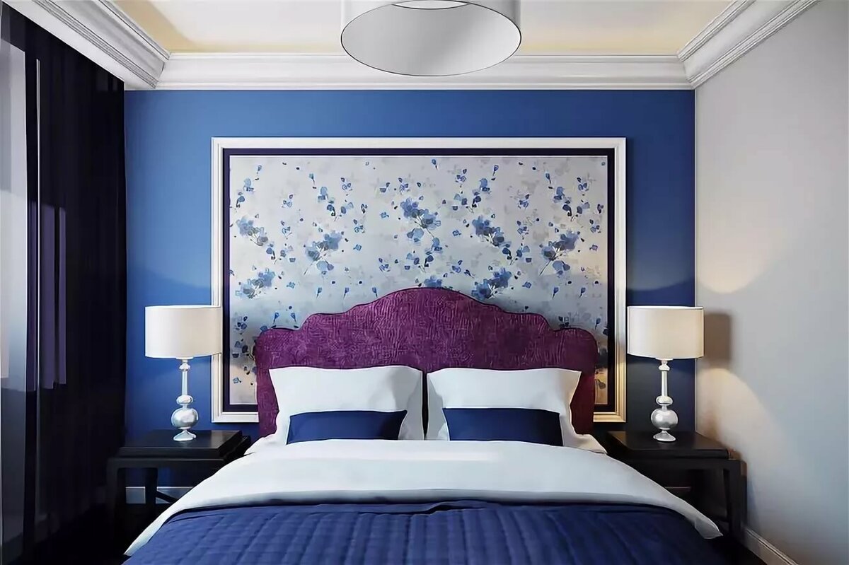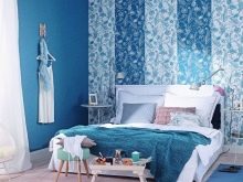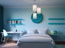 - Mavi. Bu gölge, bir yatak odasını dekore etmek için güvenle kullanılabilir. Çok iyi yatıştırır ve rahatlatır ve ayrıca mevcut alanı görsel olarak genişletir.