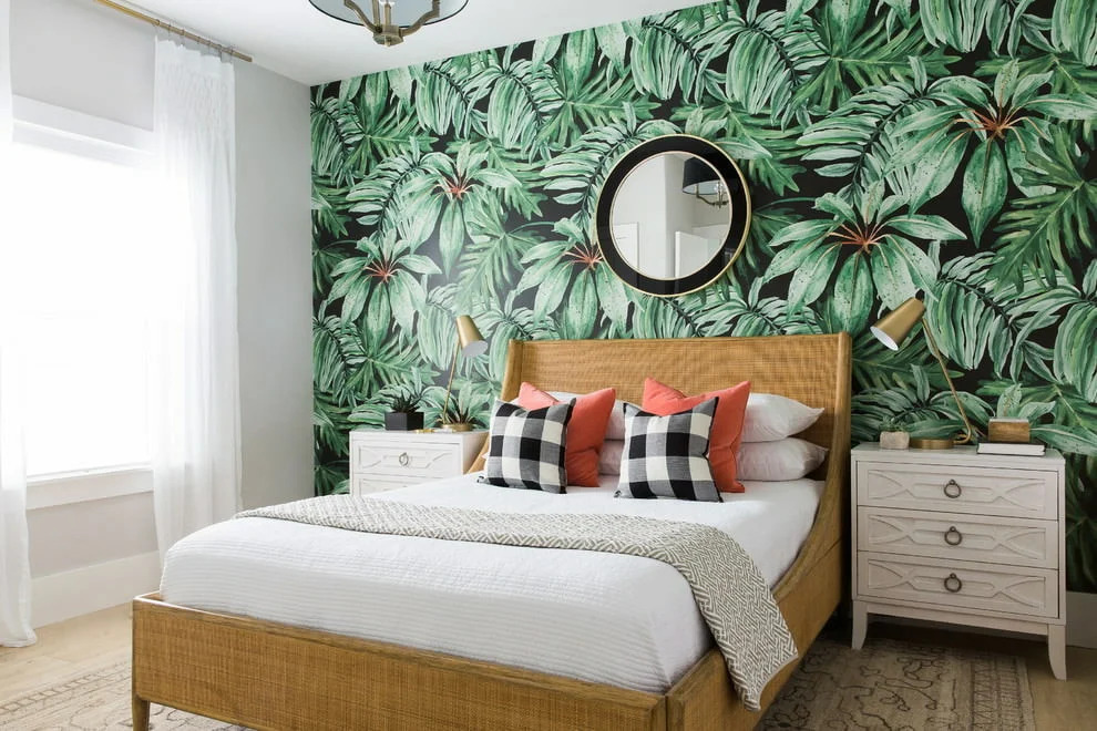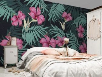 En son moda trendleri, yetişkin bir yatak odasının dekorasyonu için egzotik temada tasarlanmış duvar kağıdını seçmeyi zorunlu kılıyor. Daha önce, bu tür kaplama malzemeleri en çok "tropikal baskılar" olan mahalle için seçilmiştir, ancak bugün ayrı olarak kullanılmaktadır.
