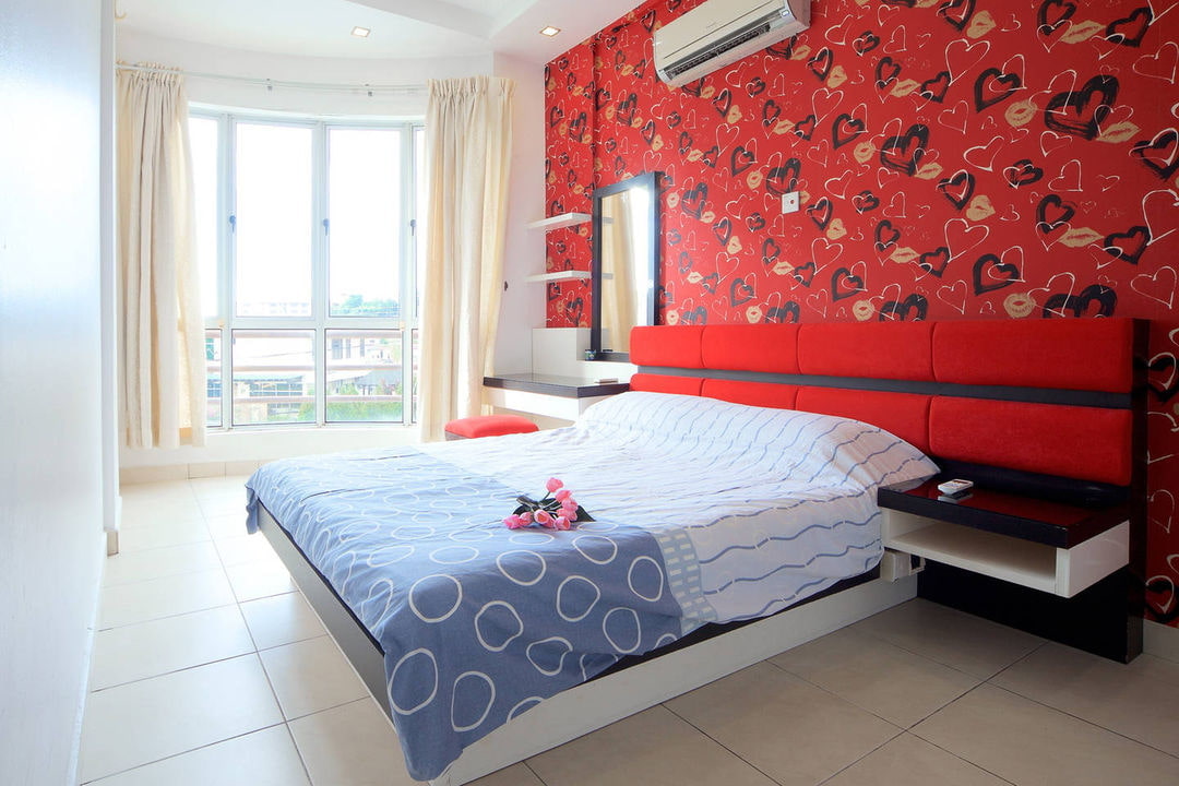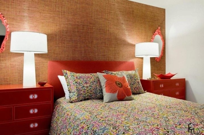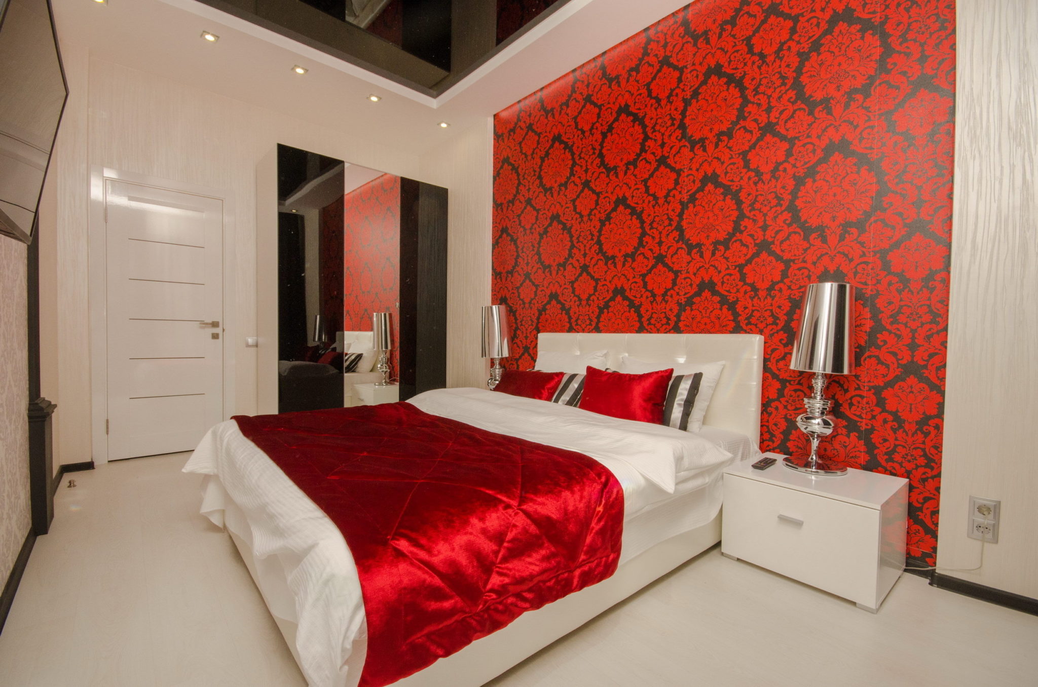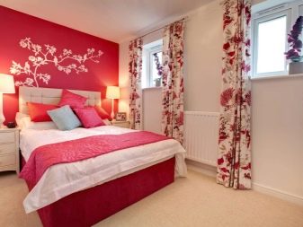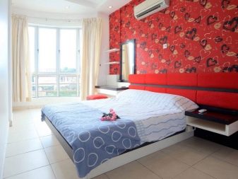 - Kırmızı. Bu sıcak renk, tutkulu ve cüretkar doğalar arasında çok popüler. Kırmızı duvarlar bir kişiyi enerjiyle doldurabilir, duygusal yükselmeye katkıda bulunabilir, ancak belirli anlarda tahrişe ve yorgunluğa neden olabilir. Bu moda rengi yatak odasını dekore etmek için kullanmak istiyorsanız, bunun için sadece bir vurgu duvarı vermeniz önerilir - bu yeterli olacaktır.