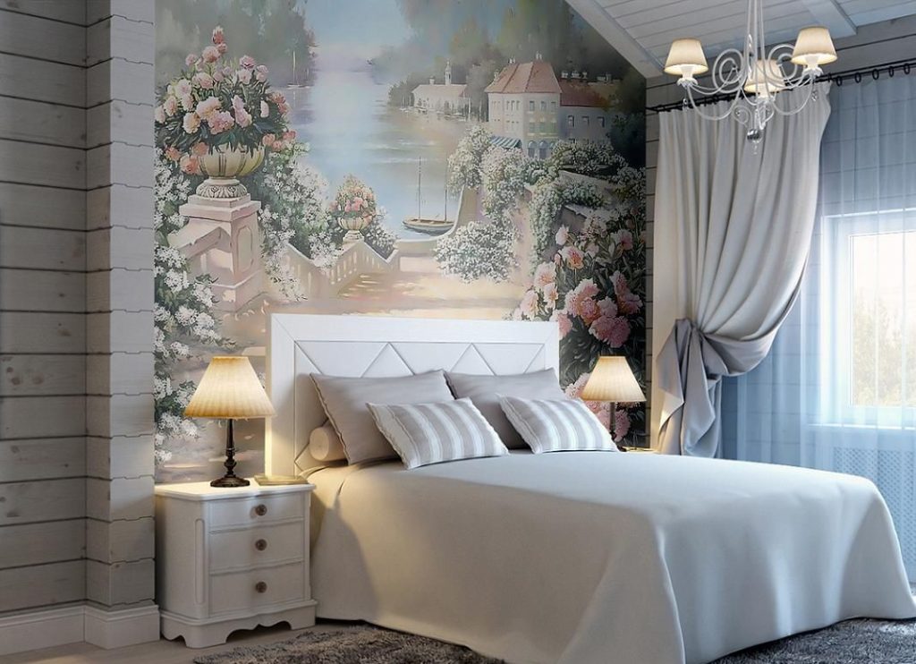- Fotoğraf duvar kağıdı. Bu tür kaplama malzemelerinin duvarlar için kullanılması artık yeni değil, her yıl sadece popülerlik kazanıyor. Bir yatak odasını etkili bir şekilde dekore etmek ve hatta düzenini / cihazını görsel olarak ayarlamak için kullanılabildikleri için duvar resimleri bugün hala trend. Günümüzde üretilen fotowall-kağıdı oldukça dekoratiftir. Günümüzde plajların ve ormanların gerçekçi görüntülerinin yerini orijinal freskler, uygulamalar, karakalem eskizler almıştır.