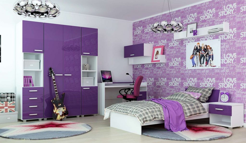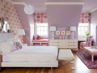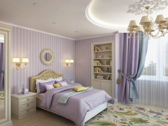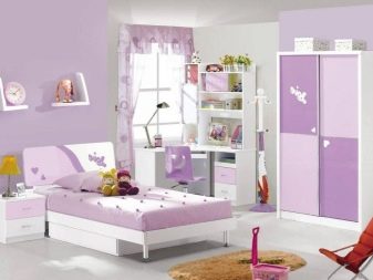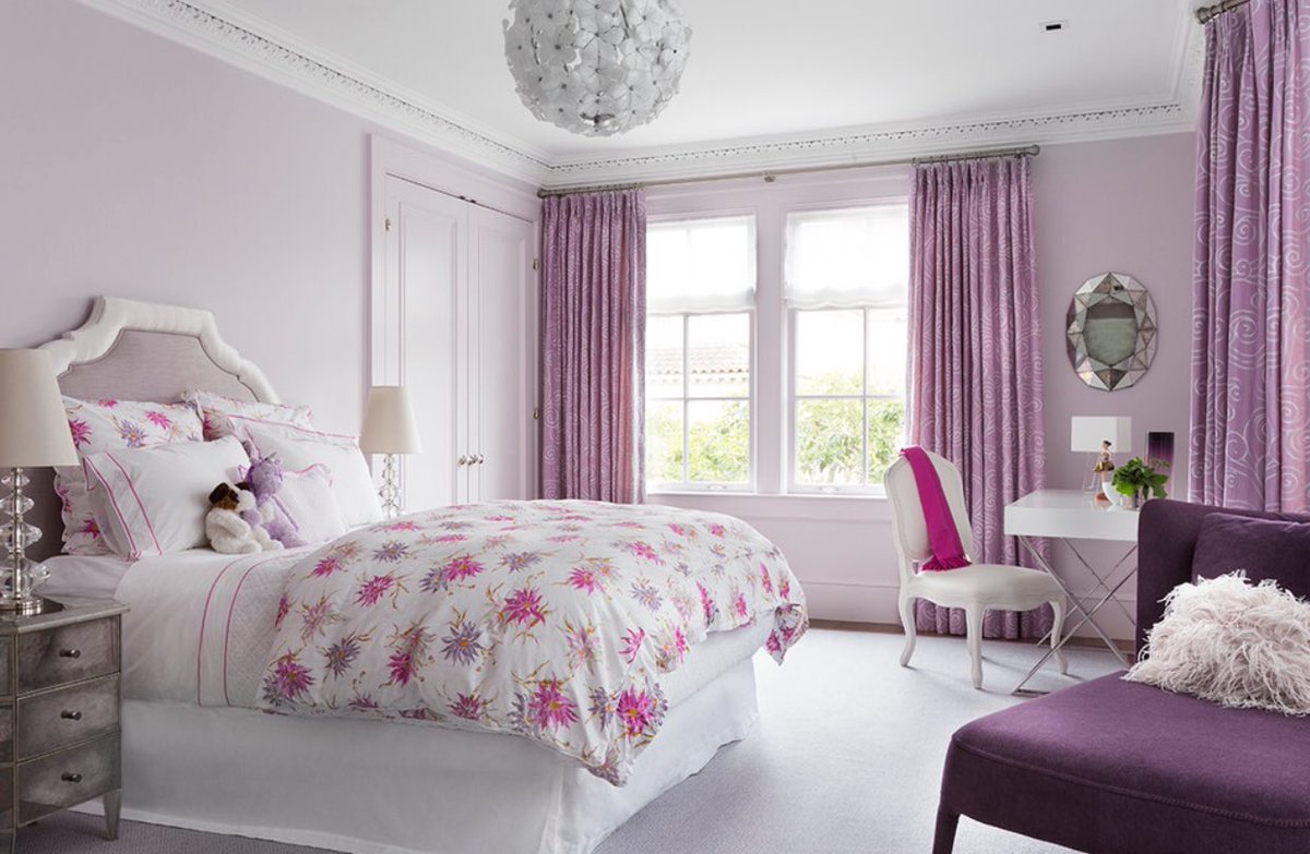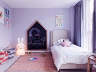 - Soluk leylak rengi, genç ve rüya gibi bir kıza ait bir yatak odası için iyi bir çözüm olacaktır. Farklı peluş oyuncaklar, kabarık yatak örtüleri, yumuşak battaniyeler bu tür ortamlarda uyumlu görünüyor.