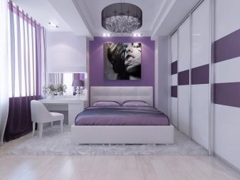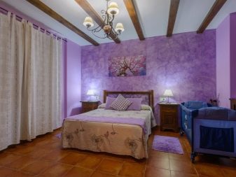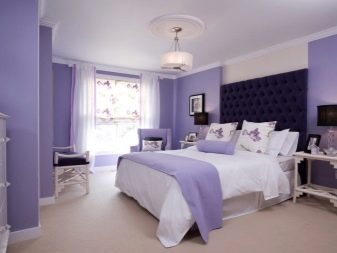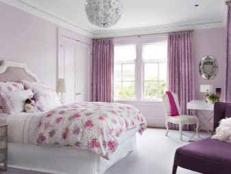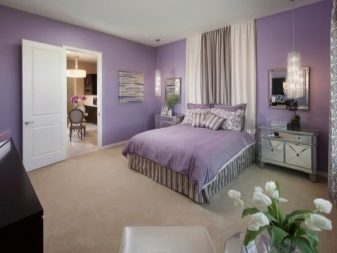 - Yatak odasında tadilat yaparken, sahipleri lavanta renginin her zaman baskın olduğunu unutmamalıdır. Ana dikkatin ödeneceği onun üzerindedir. Diğer tüm tonlar ve paletler, leylak renginin tamamlayıcısı olarak işlev görür. Bu nedenle, ahenkli ve parlak olmayan kompozisyonlar oluşturmak oldukça zor görünebilir.
