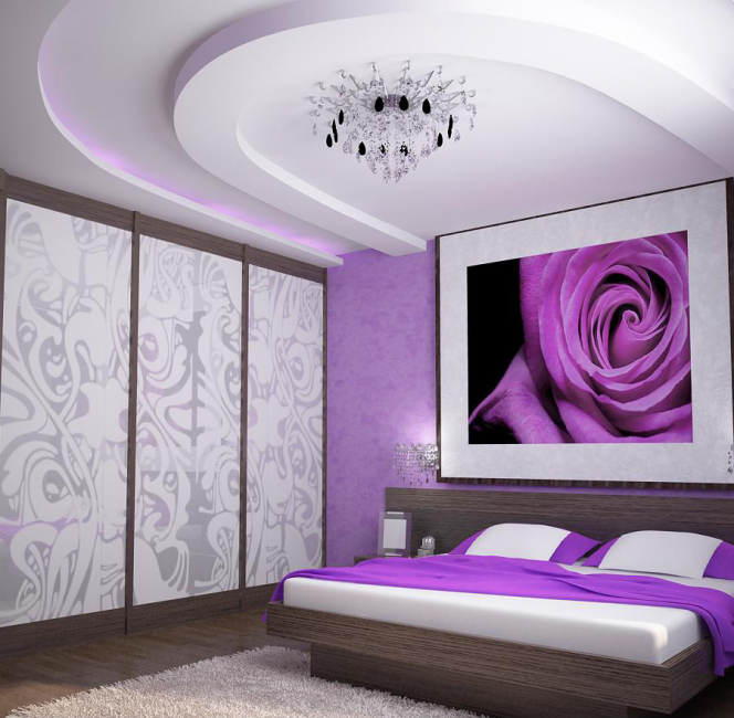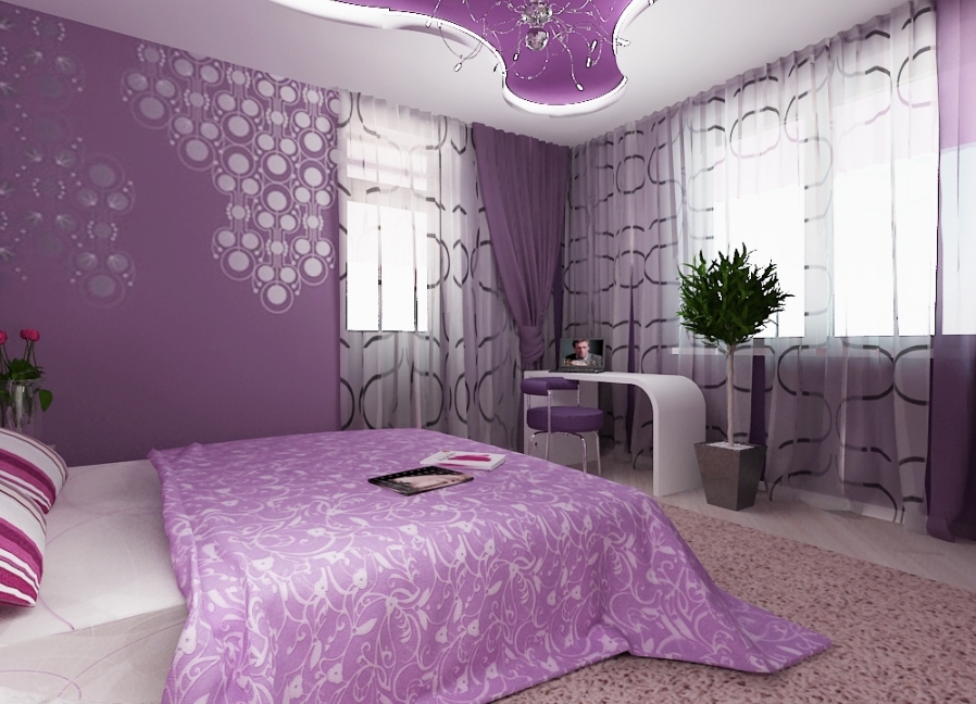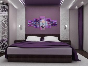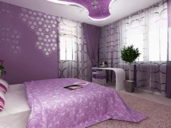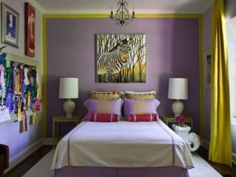 Birçok kişi, bir yatak odasını dekore etmek için yalnızca nötr tonları olan duvar kağıtlarının kullanılabileceğinden emindir. Çok az insan, orijinal renk şemasının seçiminde deneylere başvurmaya cesaret eder. Aslında, bir yatak odasını dekore etmek için çok çeşitli renklerde tuvaller seçebilirsiniz. Leylak seçenekleri burada çok çekici görünecek. Bu tür duvar kağıtlarının bulunduğu bir oda yumuşak, rahat ve sıcak görünecek. Ana şey, tasarımı hakkında akıllı olmaktır.
