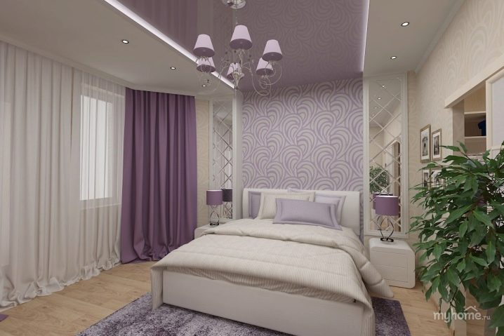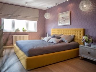 Tüm sorumluluğu ile yatak odası için doğru duvar kağıdını seçmek gerekir. Sadece pastel veya nötr değil, aynı zamanda daha etkileyici kaplama malzemeleri renklerini de kullanabilirsiniz. Duvarları leylak duvar kağıdı ile süslerseniz, mobilyalar çok ilginç ve çekici olacaktır.