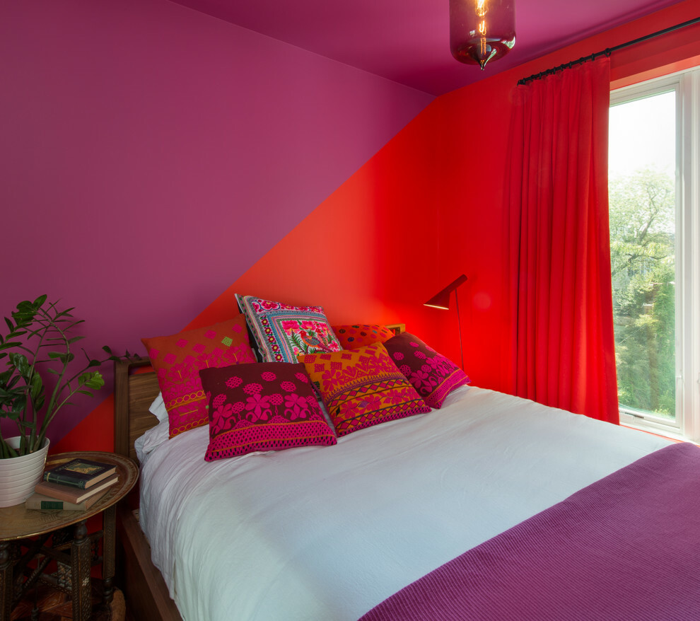- Kayısı veya havuç tonları ile ustaca birleştirilen bu renk, canlı ve neşeli insanların yatak odası için ideal.