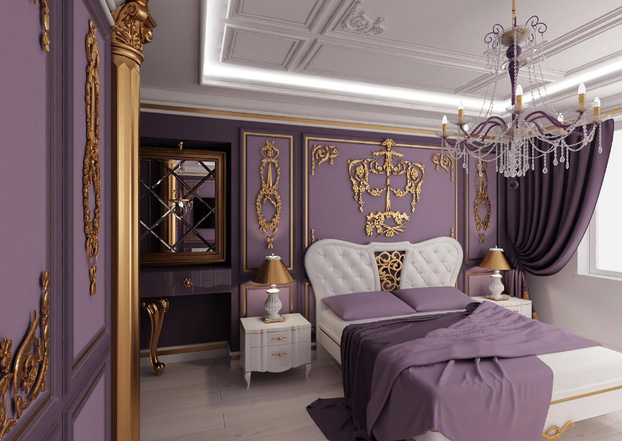 Koyu leylak tonları iç mekanı zenginleştirebilir, daha şık, aristokrat hale getirebilir.